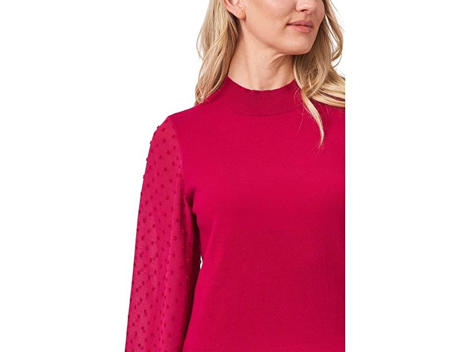 Delicately beautiful, this sweater from CeCe pairs polka dot texture on the sleeves with a mockneck for a feminine and flattering look.