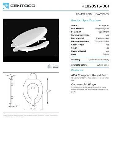 Centoco HL820STS-001 Plastic Elongated Toilet Seat with Open Front, White IG5T_SFW924