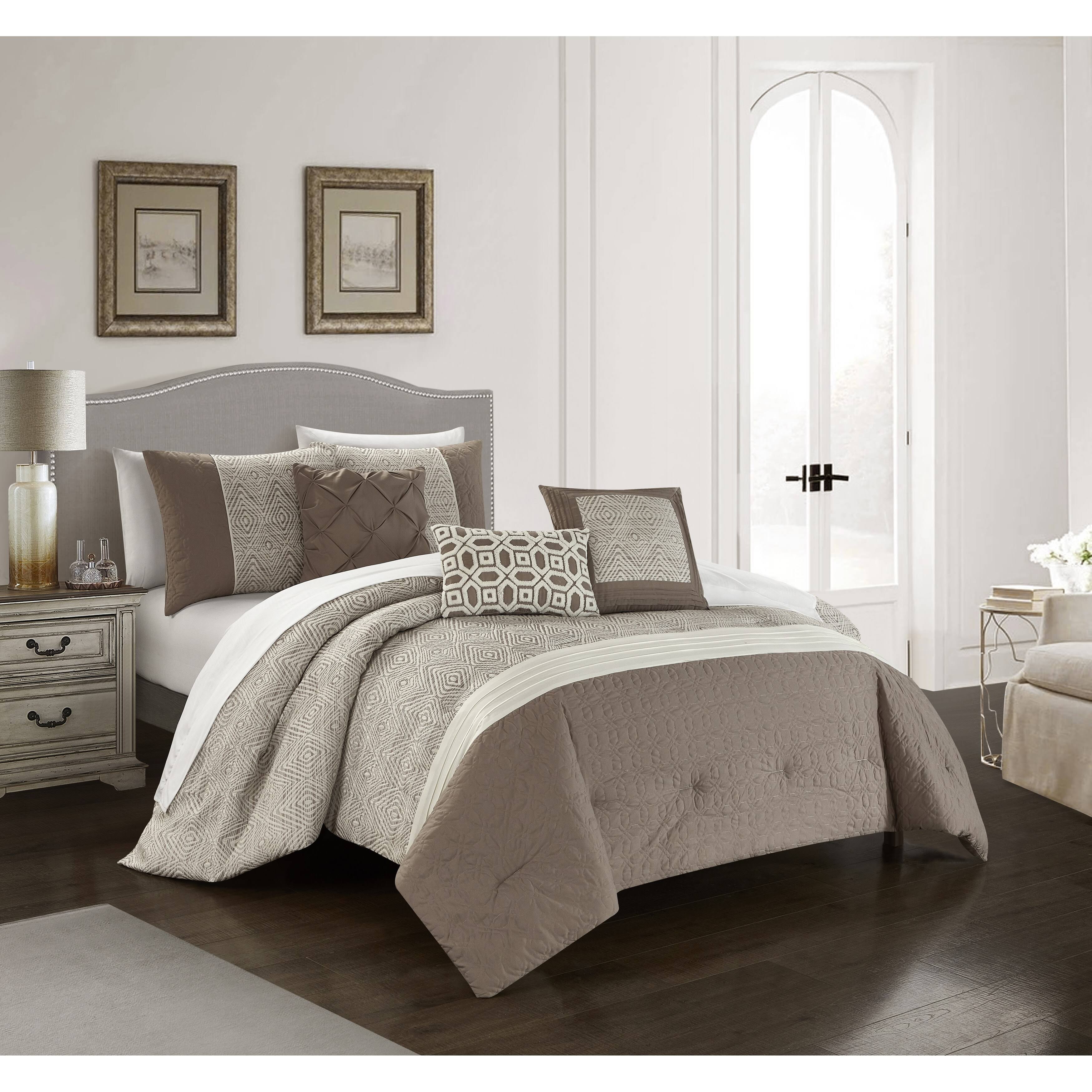 Chic Home Ima 6 Piece Jacquard with Quilted Details Comforter, Beige - Queen IT4K_HUT403