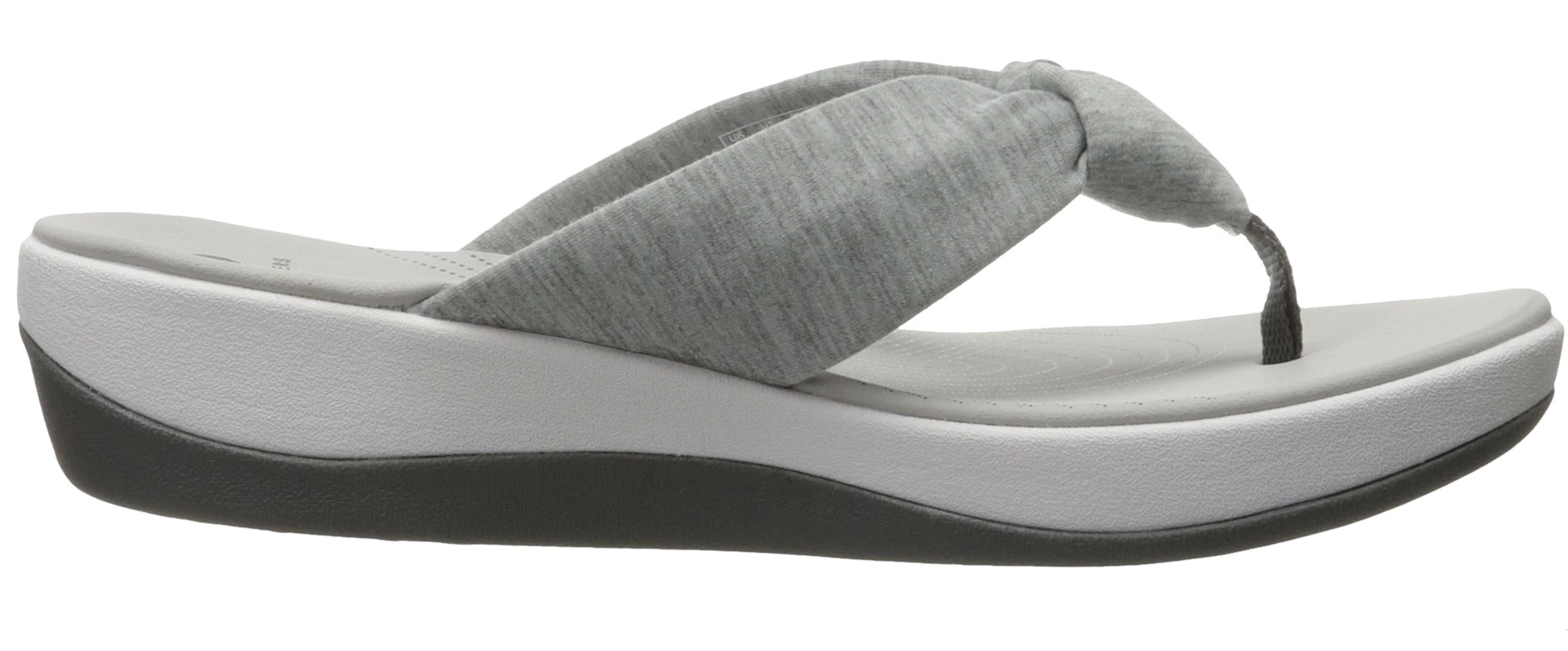Soak up the sun in comfort and style with the womens Clarks Arla Glison thong sandal. The dual density Cushion Plus footbed helps reduce strain on the ball of the foot and supports your natural gait. The durable rubber outsole provides traction and stability, ideal for all-day activities. Textile upper. Breathable synthetic lining. Cushion Plus molded EVA footbed for ultimate support and all-day comfort. Durable rubber outsole provides traction.