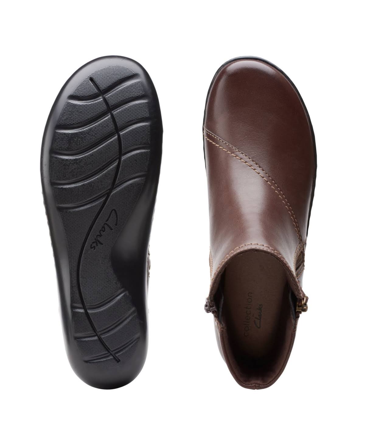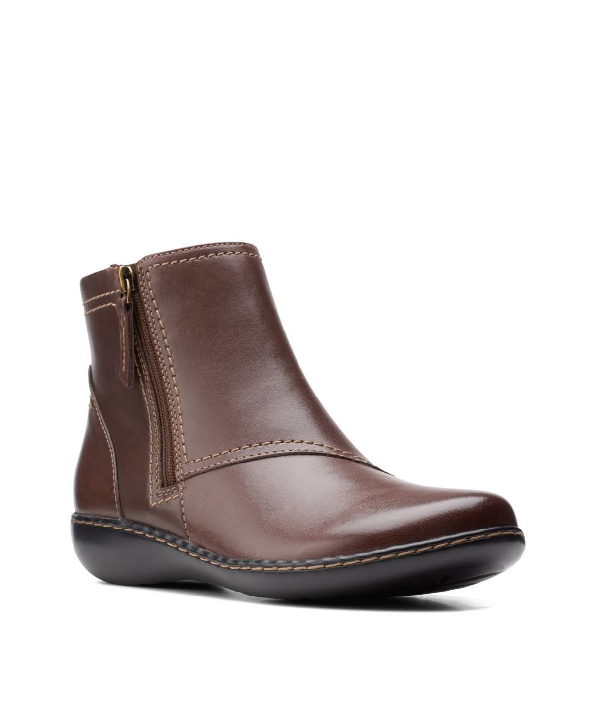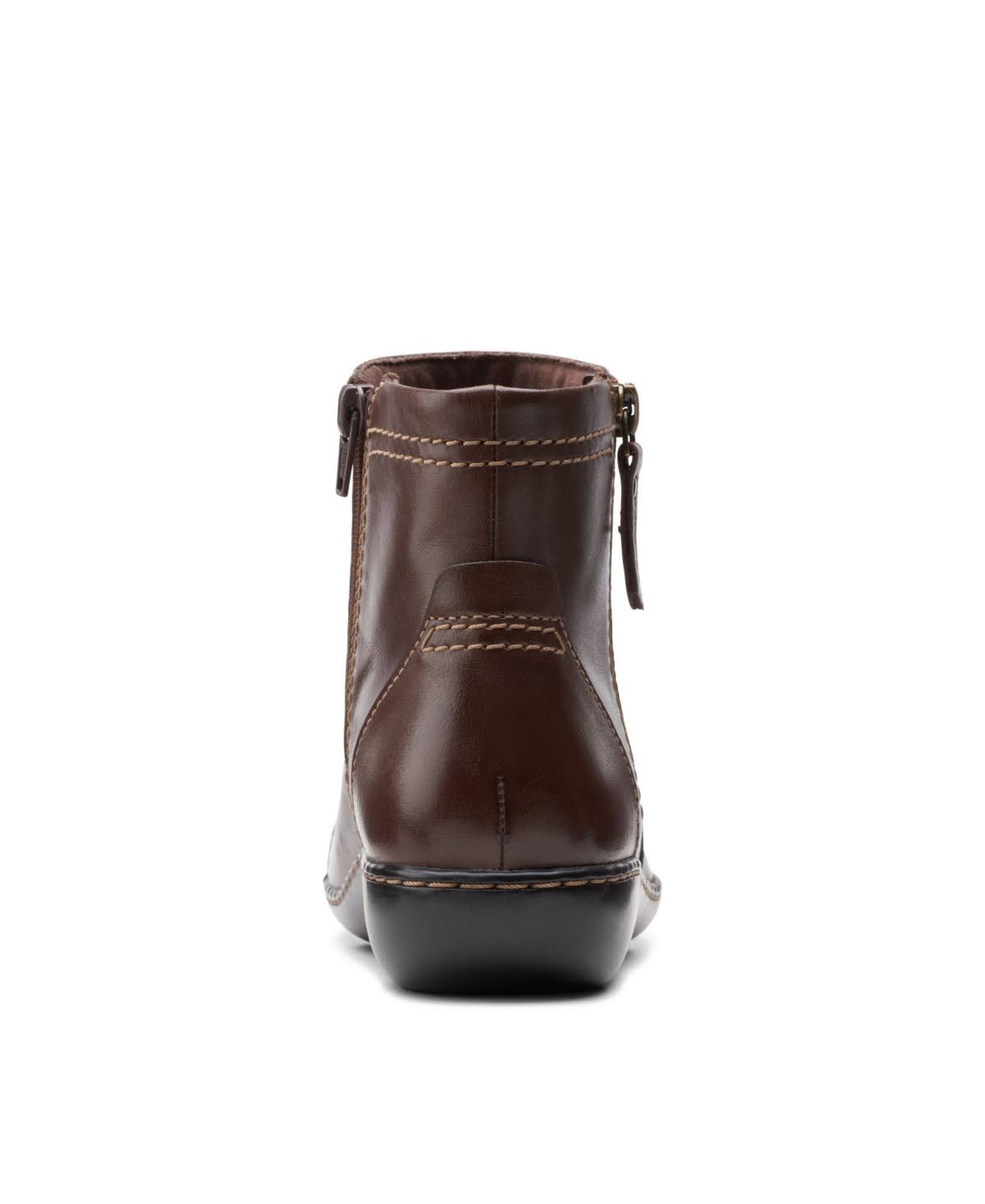This easy low-heel bootie benefits from a full grain leather upper and a convenient zipper closure. As an ultimate comfort style, it features full-length cushioning and an ortholite material footbed that wicks away moisture and reduces impact.
