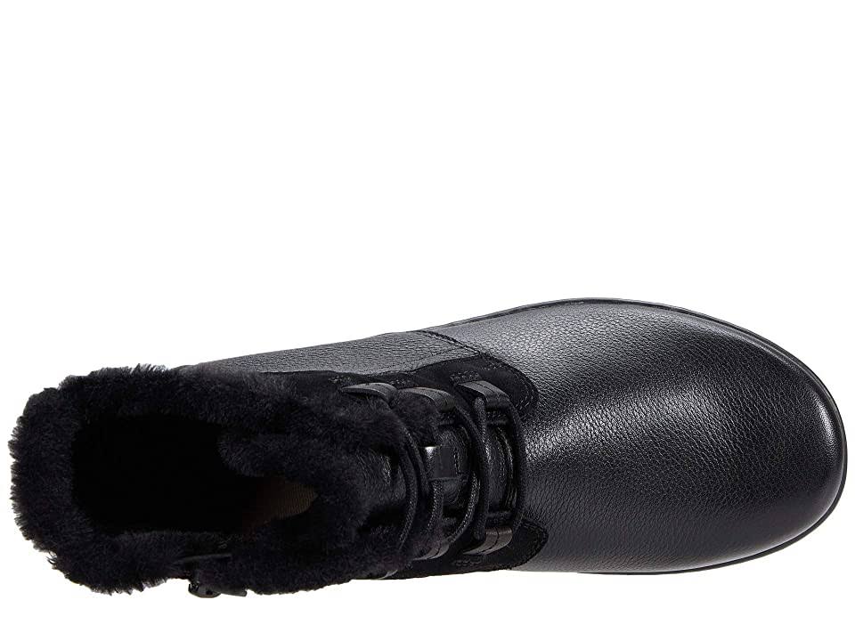 Leather upper with faux fur trim . Ankle-high shaft. Tie closure. Lightly cushioned footbed. Textured outsole . 1-3/4" heel height