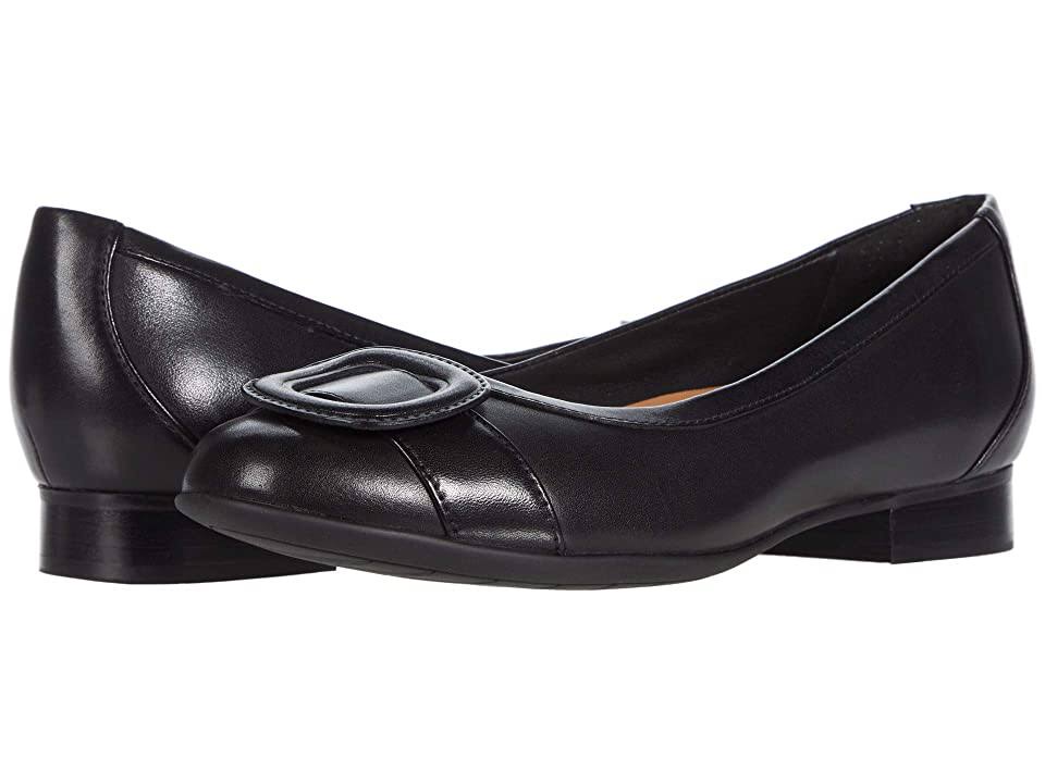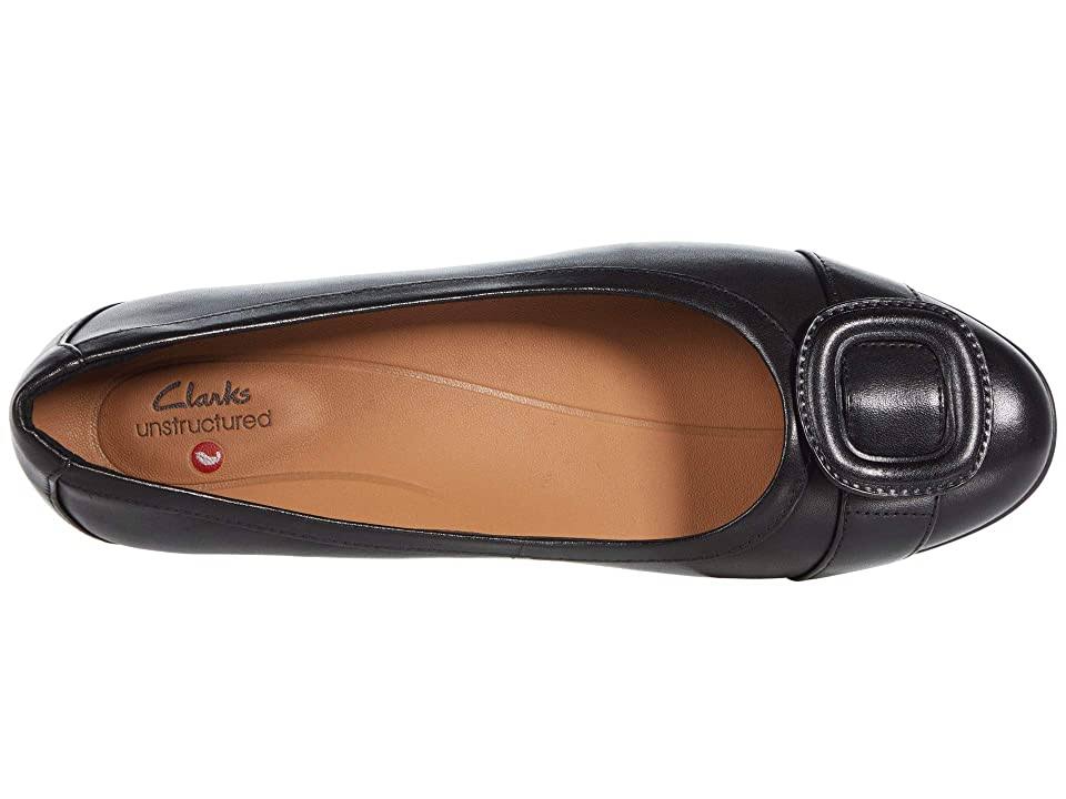 Clarks Un Blush Cove - Women's Shoes : Black Leather : The Un Blush Cove is part of the Clarks Unstructured Collection. The Clarks Un Blush Cove ballet flat has a classic silhouette with all the comfort you need. The leather upper boasts a sleek silhouette with a decorative buckle at the toe. Leather lining and footbed. Removable OrthoLite footbed enhances comfort while reducing impact. Rubber outsole. Imported. Measurements: Weight: 9 oz Product measurements were taken using size 8.5, width B - Medium. Please note that measurements may vary by size. Weight of footwear is based on a single item, not a pair.