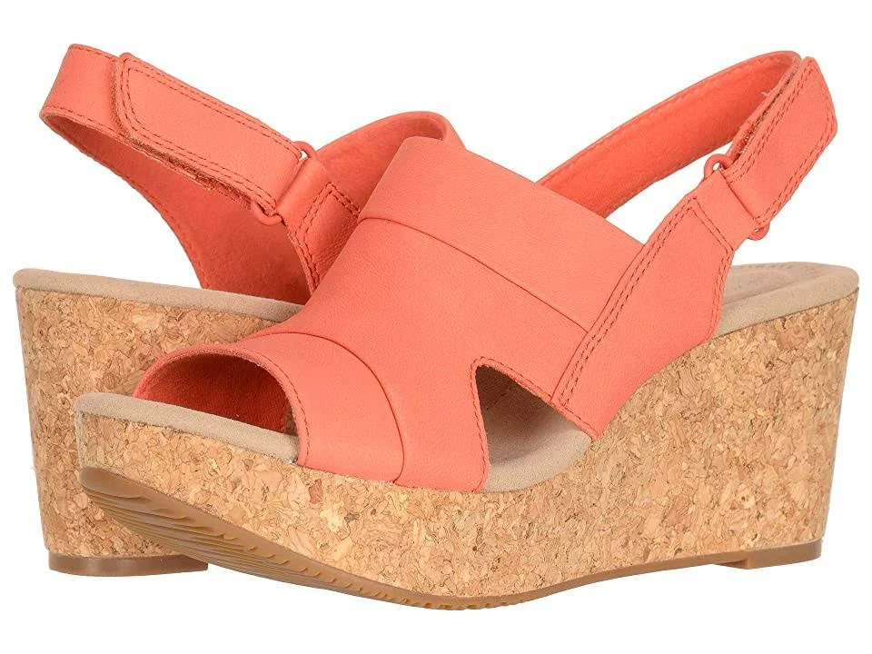 Clarks Women&s Annadel Ivory Wedge Sandal, Size: 6, Coral Nubuck JG9C_VZY124