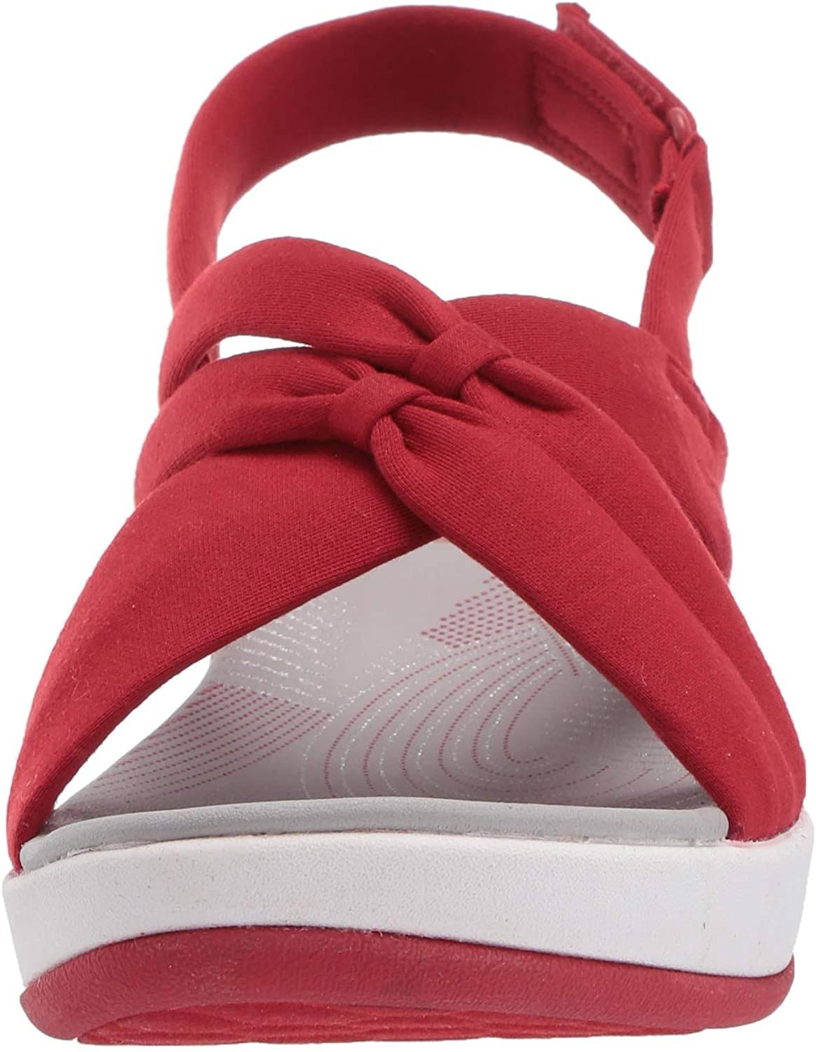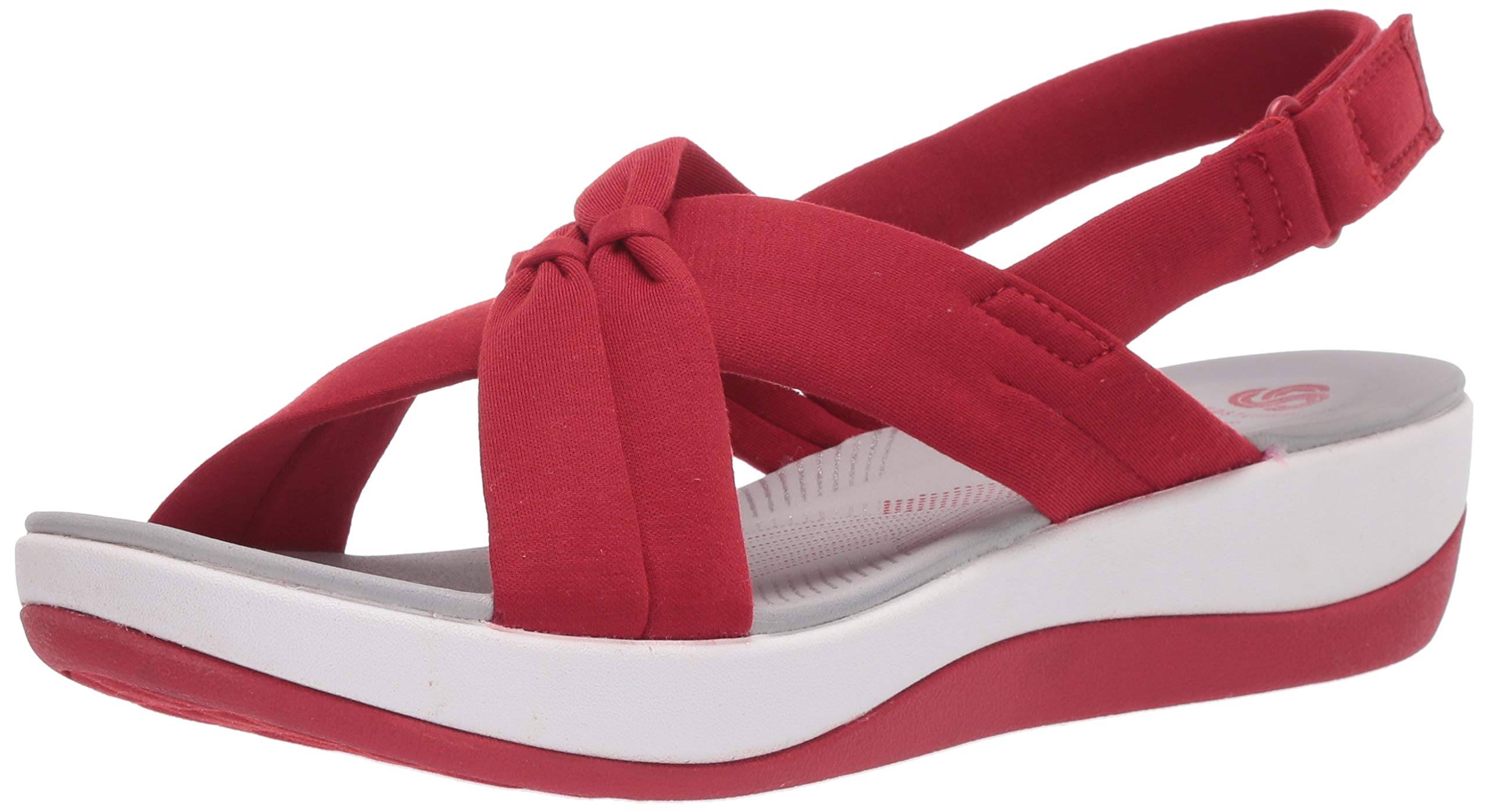 A cute, sporty look and a soft, comfy feel land these Cloudsteppers by Clarks sandals at the top of your packing list. Whether you're traveling near or far, the Arla Belle is too versatile to be left behind. Features: Round open toe. 1.75" heel; 1" platform. Hook & loop slingback strap. Soft cushioned footbed. Fabric upper / Rubber sole. Import.