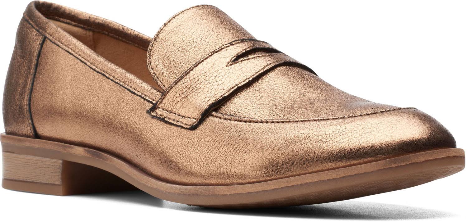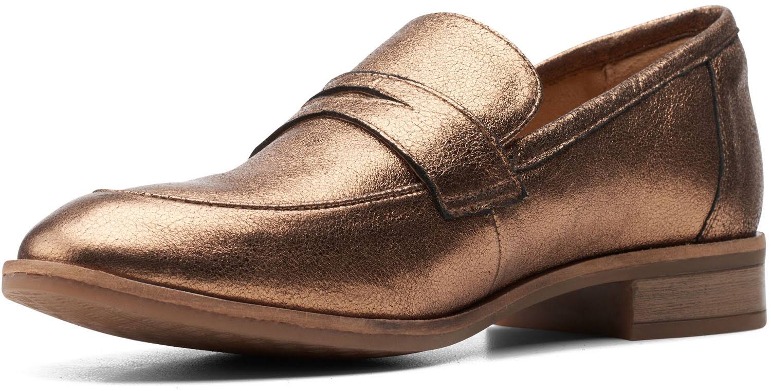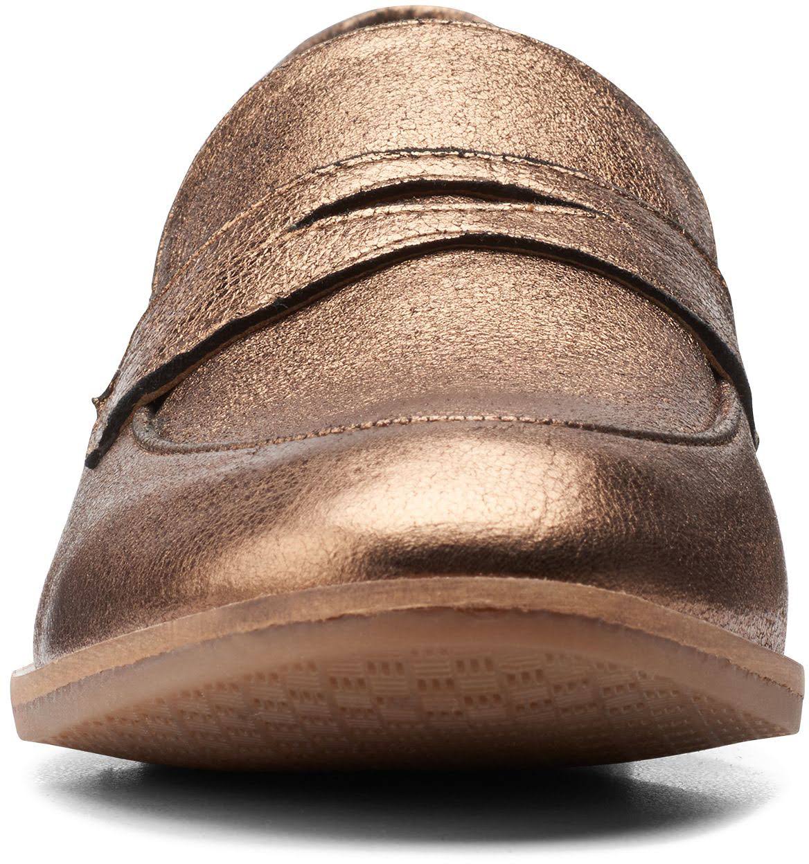 Featuring a dressy take on a classic silhouette, the Clarks Trish Rose Penny Loafer effortlessly pairs with your casual ensemble. This slip-on features an OrthoLite insole with full-length cushioning and targeted padding for all-day comfort. Features and Benefits Part of the Clarks Collection Textile lining Full-length cushioning and targeted padding for step-in comfort OrthoLite insole ensures long-lasting cushioning and breathability Antimicrobial and moisture-wicking TPR outsole 1" heel height