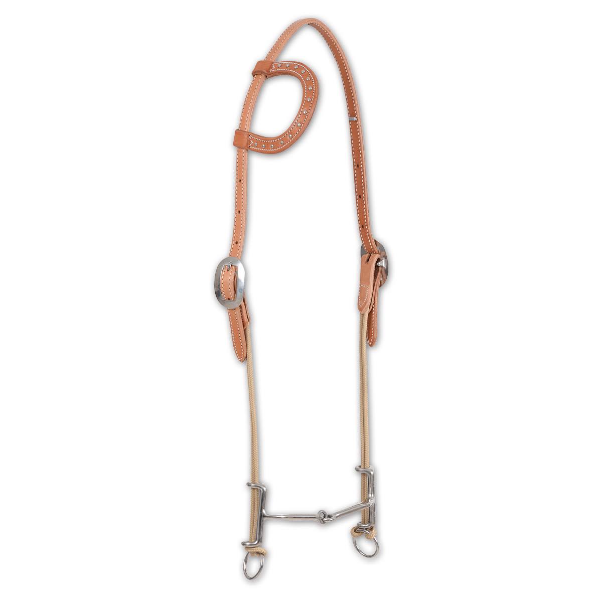 Loomis Gag bits can be for everything from starting colts to tuning seasoned finished horses. Perfect transition to use directly following the ring snaffle by giving the rider lift and sharpness, which makes it easier to progress the young horse into side-passing and reverse-arc maneuvers. Excellent for teaching a colt to be collected and helps the rider to effectively communicate neck and body flexion. Popular training tool for barrel racers, reiners, cutters, and endurance riders. The slip ear style is available in a smooth or twisted mouthpiece. Durable blue nylon cord cheek pieces, stainless steel hardware on double stitched natural leather headstall with dots. Ready-to-use, all you need are reins.