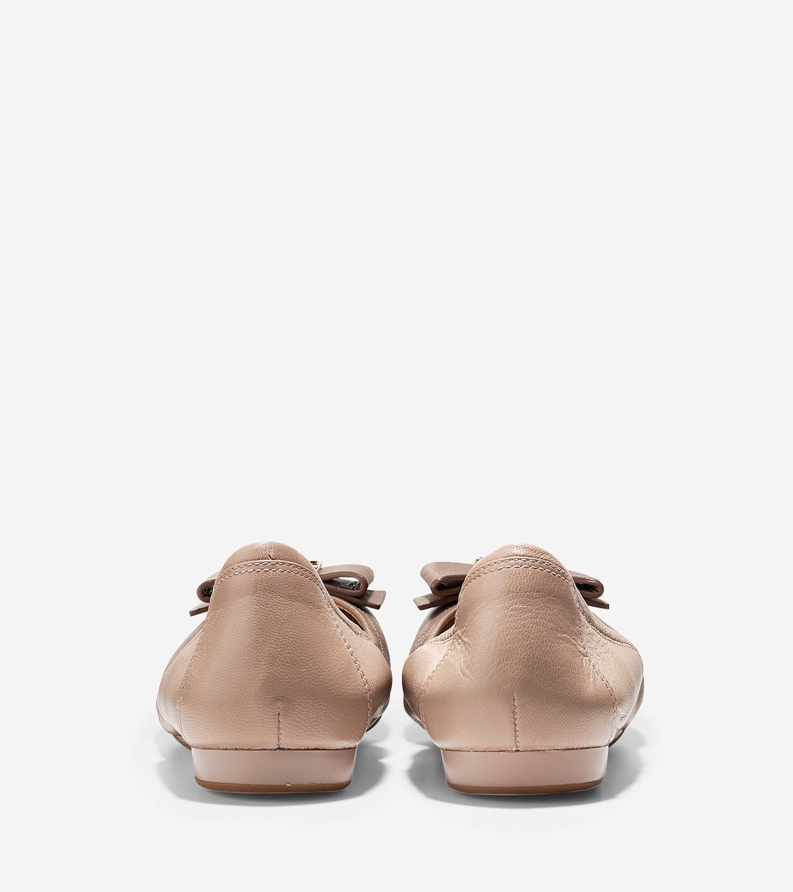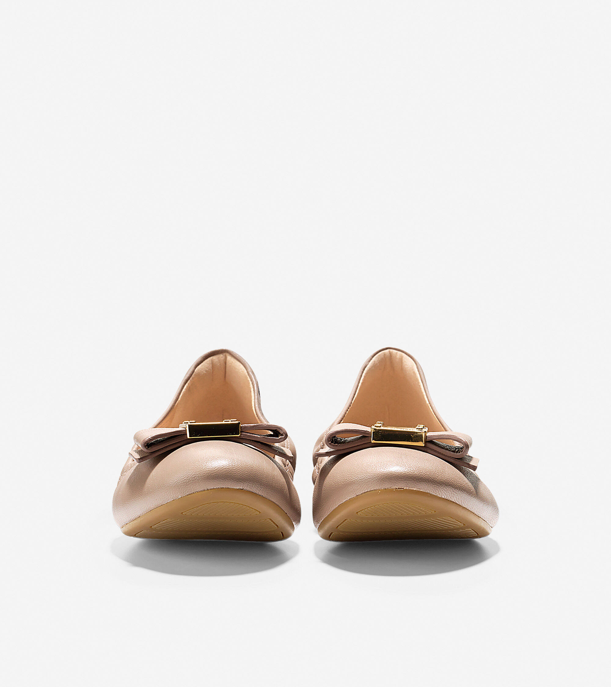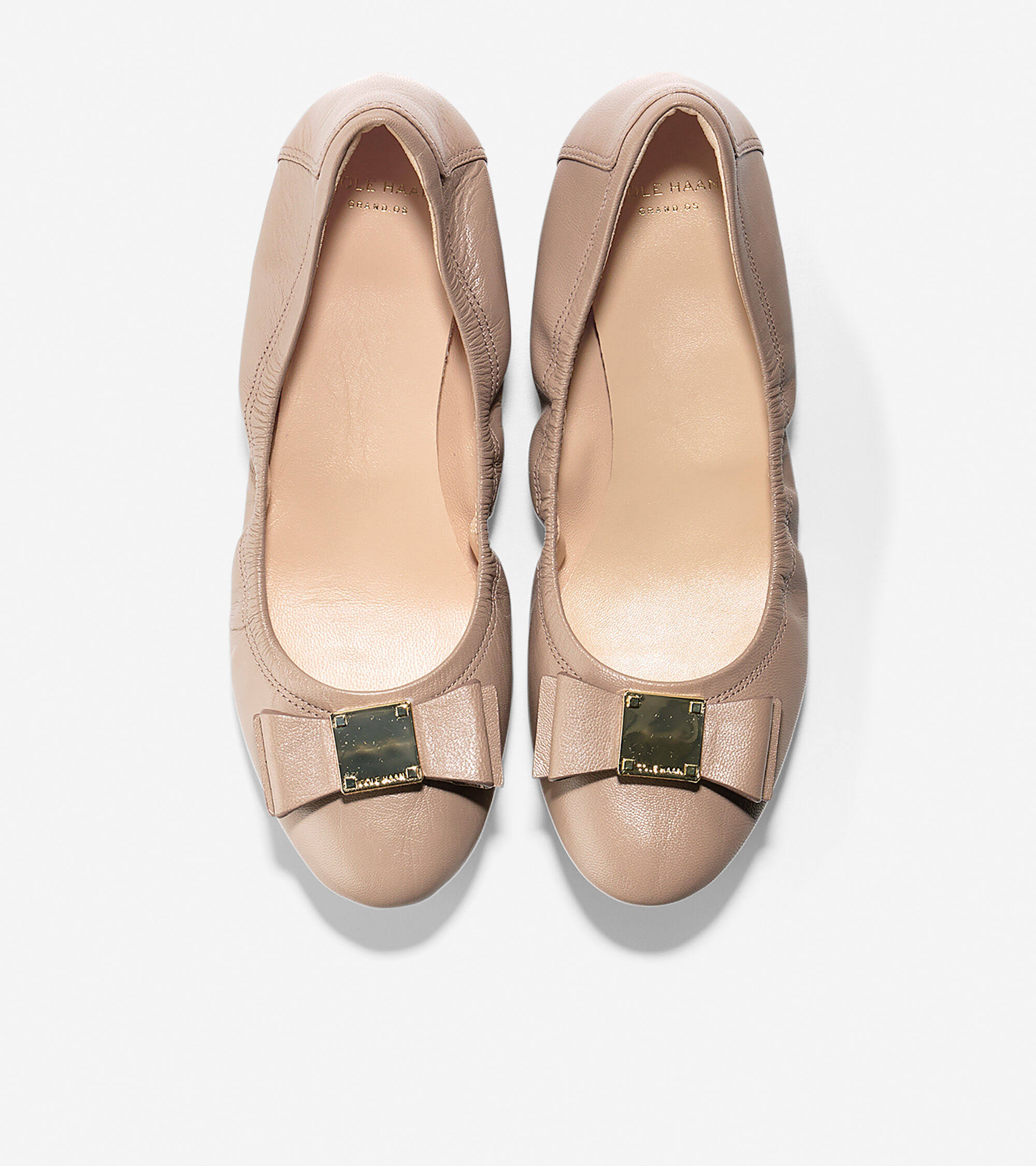 Women's Cole Haan Tali Bow Ballet Flat - Natural - Ballerinas A feminine bow and gold Cole Haan signature hardware adorn its upper of buttery leather, while its base boasts both a half-inch micro wedge and a footbed padded with our Grand. OS technology. Pair with slim-fit trousers and a silk blouse for work, or skinny jeans and a soft knit for casual weekend wear. Smooth leather upper. Fully lined. Fully padded leather sock lining. Lightweight polyurethane mid-sole and rubber outsole. Cushioned with Grand. OS technology for ultimate comfort.