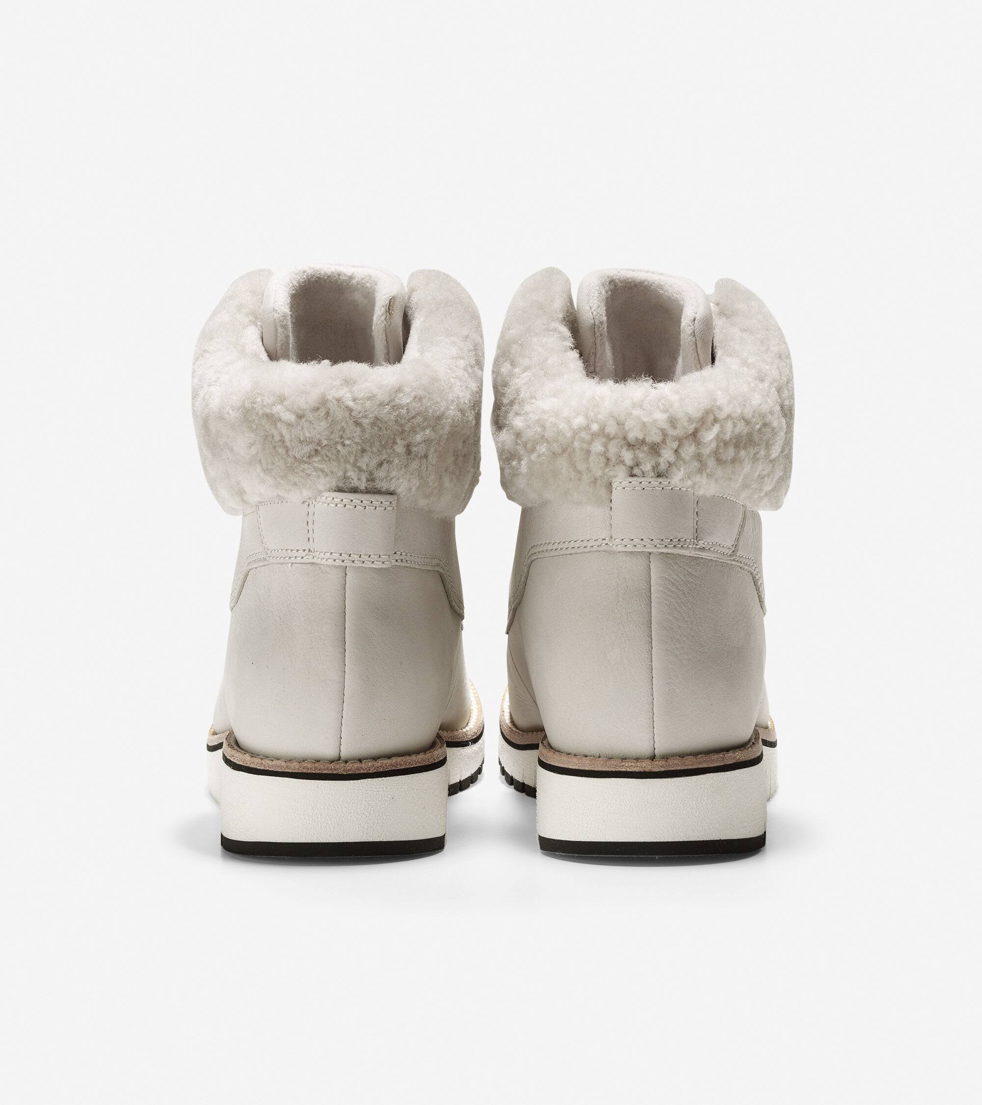 Scaling new verticals and breaking boundaries our ZeroGrand Explore Waterproof Hiker incorporates innovative technical features and fabrics with a progressive fashion-forward style ready to tread both the Great Outdoors as well as the city streets. Featuring a fusion of technical engineering and elevated outdoor style that brings an explorer-level of performance and waterproofed winter comfort. Posh detailing such as a shearling padded collar and supple nubuck upper offer subtle luxury while a functional waterproof and seam-sealed construction keep the boot dry and warm.Premium waterproof leather and suede uppers. Please note: the upper is waterproof but the construction of the boot is only water-resistant. Shearling padded collar. Leather welt. EVA midsole and outsole for traction and durability.