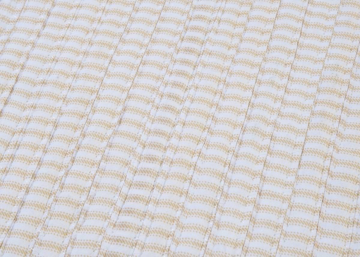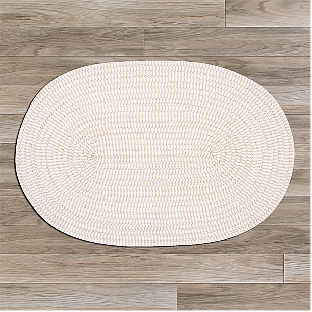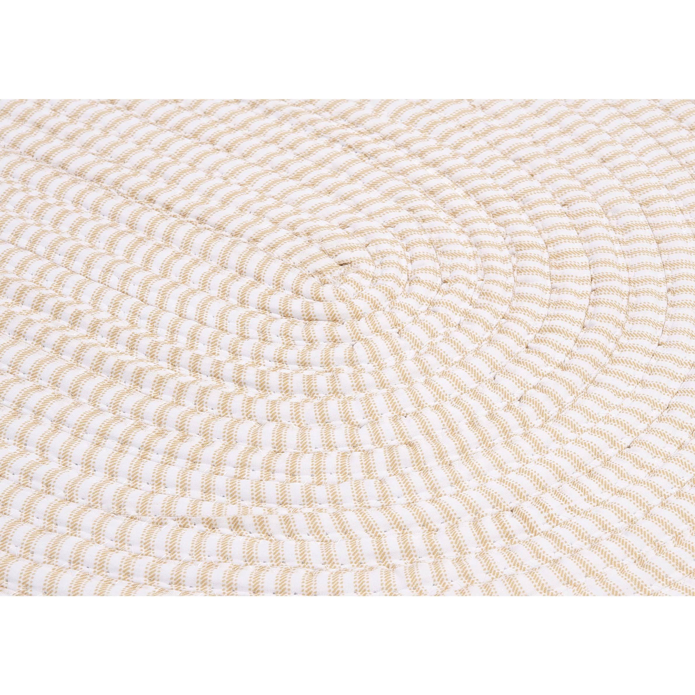 Cotton blend ticking stripe fabrics in soft colors create the perfect bedroom accent rug. Rug is reversible. Care instructions vacuum with hard surface attachment only. Spot clean with any common household cleaner.