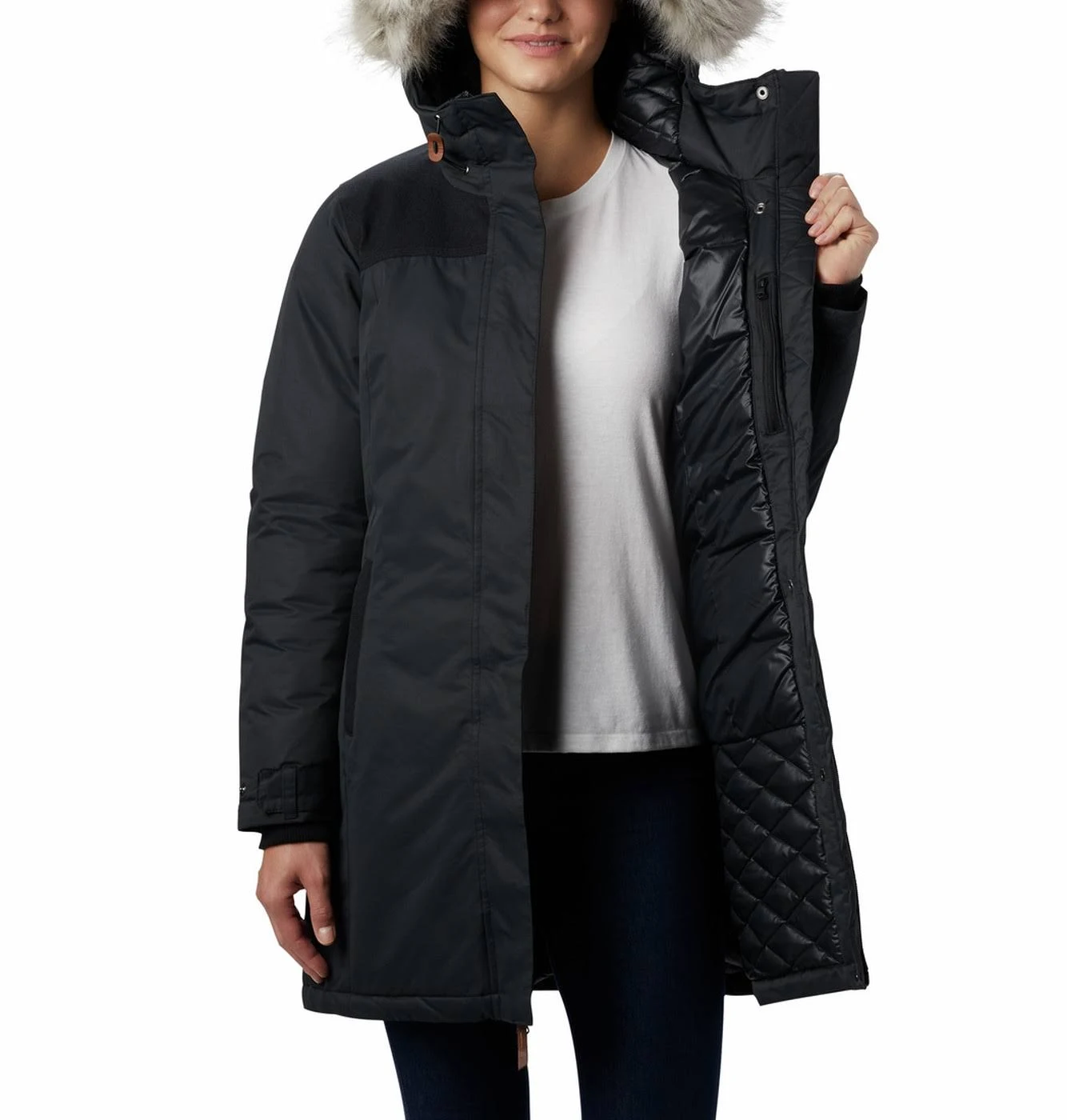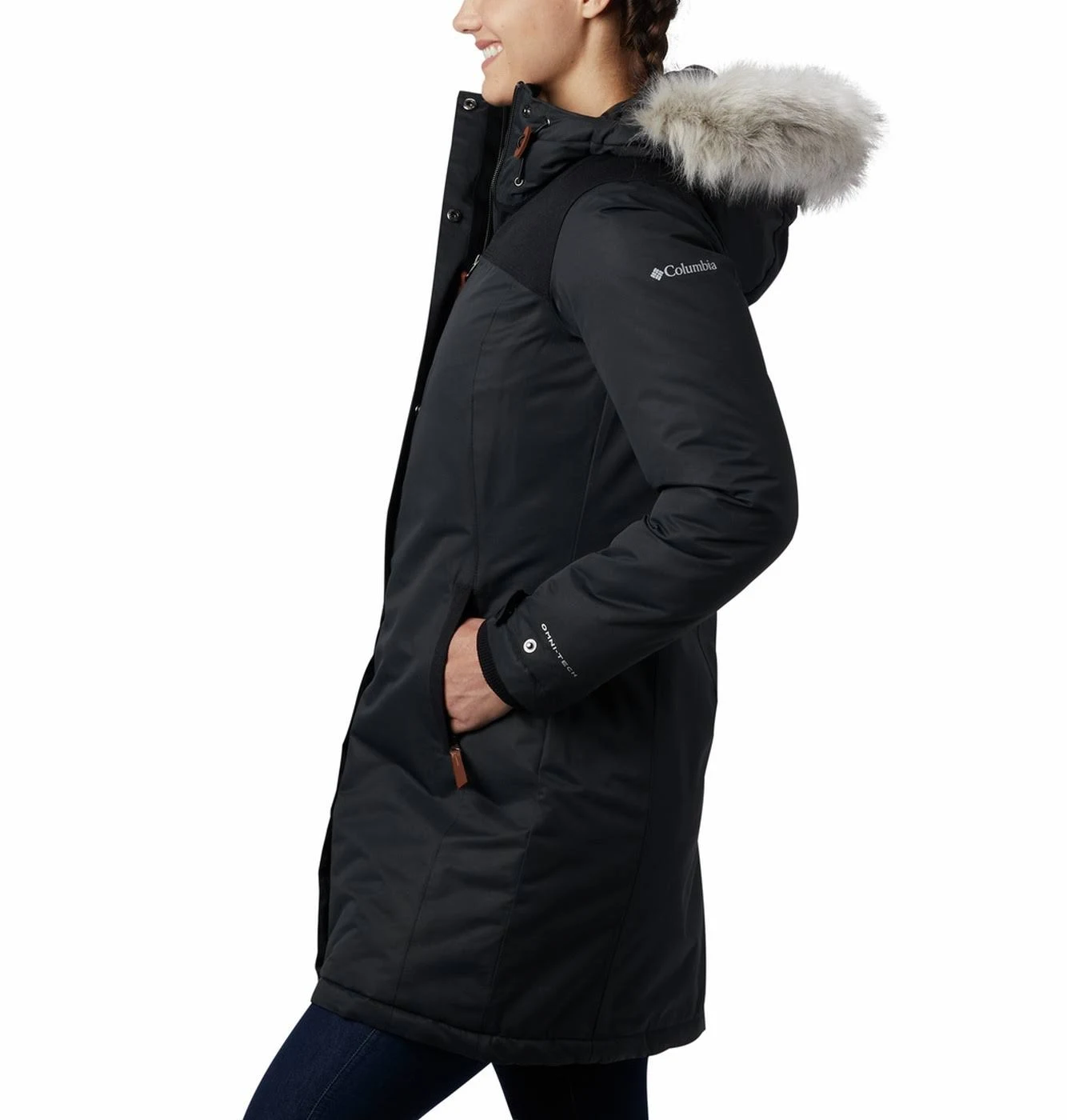 Columbia Women's Lindores Jacket Coat (L, black) - The Women's Lindores Jacket is a long, comfortable coat for everyday wear. To ensure that you get the protection you need, the coat has a breathable and waterproof Omni-Tech membrane. The two-way zip allows you to zip open the coat from the bottom, which is perfect for whenever you want a bit more freedom of movement. As for storage, there are inside security pockets and two zipped outside pockets you can use to store your valuables. Lastly, the hood has a classy fake fur trim, which you can detach at any time.