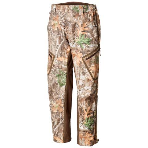 Designed for the avid hunter these versatile Columbia camo pants feature wind-blocking water-and-stain resistant fabric perfect for long days in the field. Find comfort with articulated knees leg vents and a partial elastic waist. Hand back and thigh pockets with waterproof zippers add extra utility.