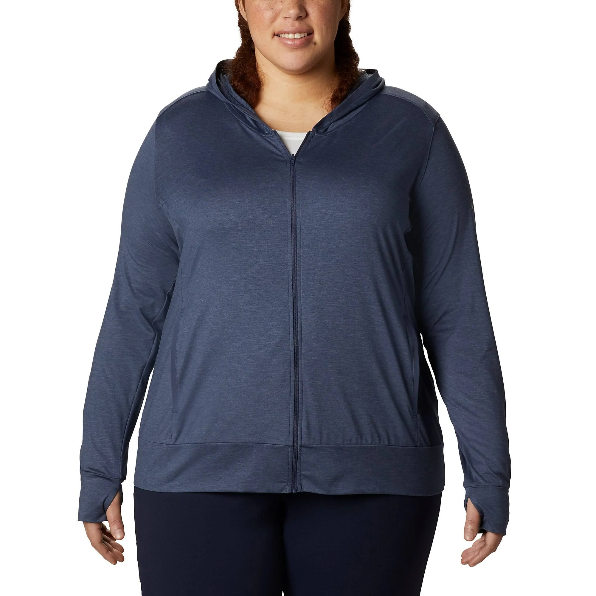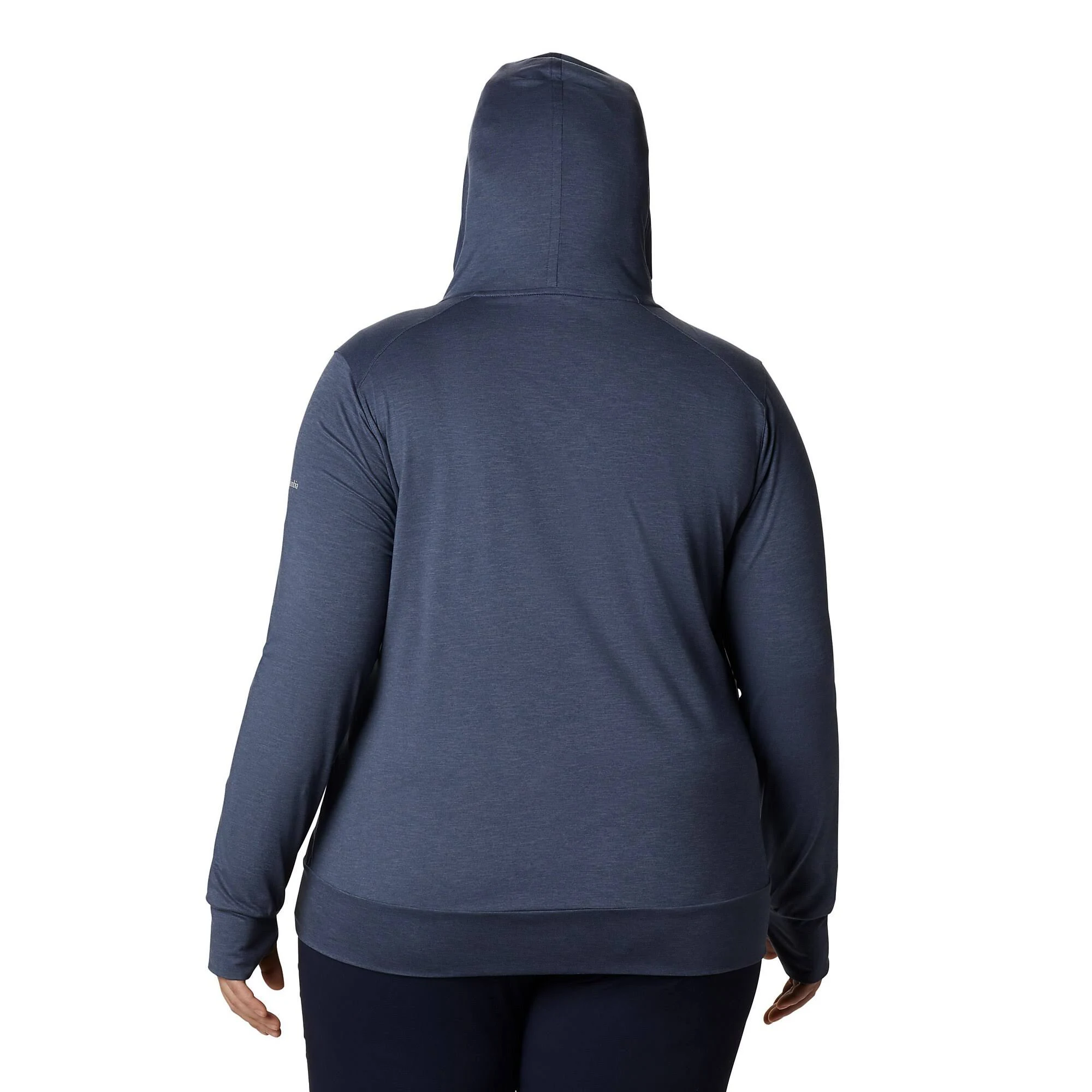 The Columbia Place to Place II Full-Zip Long-Sleeve Hoodie for Ladies will be your go-to anytime layer for sports, travel, or weekend wear. This Columbia hooded jacket provides Omni-Shade UPF 50 sun protection and Omni-Wick moisture-wicking performance to dry quickly. Its made of a lightweight comfort stretch fabric that moves with you. The Columbia Place to Place II Full-Zip Long-Sleeve Hoodie for Ladies has hand pockets and thumbholes to keep sleeves in place. 94% polyester/6% elastane. Machine wash. Imported. Color: Nocturnal Heather.