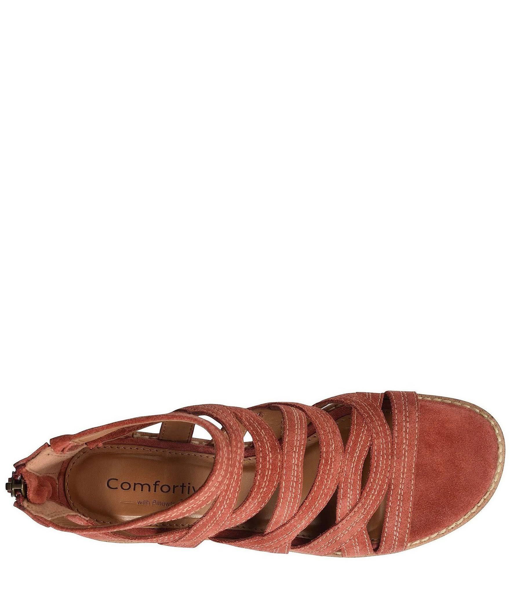 The Comfortiva Betha Strappy Sandal is an ideal pick for your casual getaway. This on-trend sandal features an ergonomically designed Comfortiva Align Technology that provides superior stability and Pillowtop Memory Foam Footbed that offers long-term cushioning and support. Responsive support Comfortiva Align Technology An ergonomically designed, removable orthotic Stabilizes the foot by supporting the arch and heel Assists with proper alignment Reduce pressure on tendons and joints Multi-level arch Heel cup Dual-density impact foam absorbs shock and supports your arch Flexible.