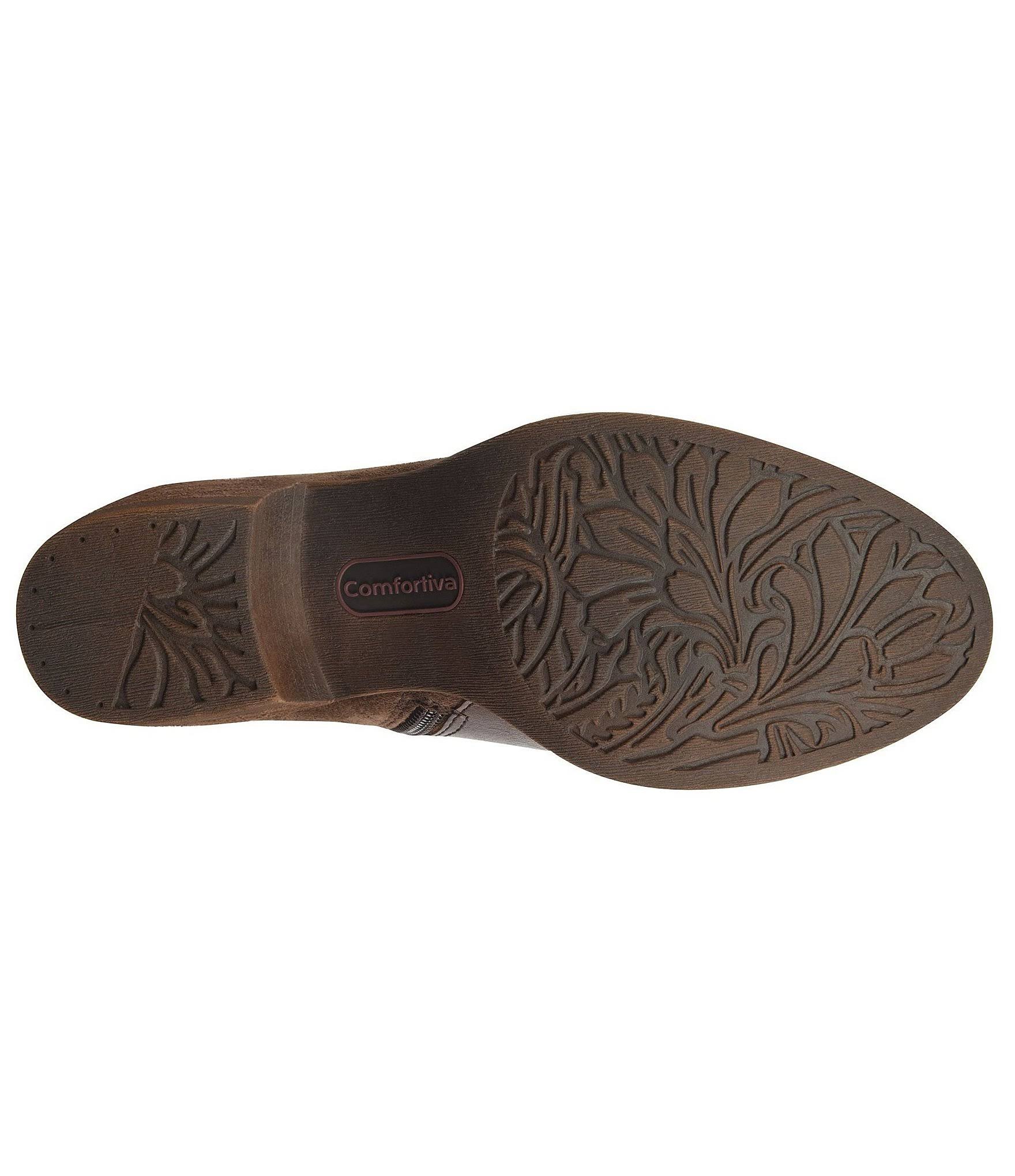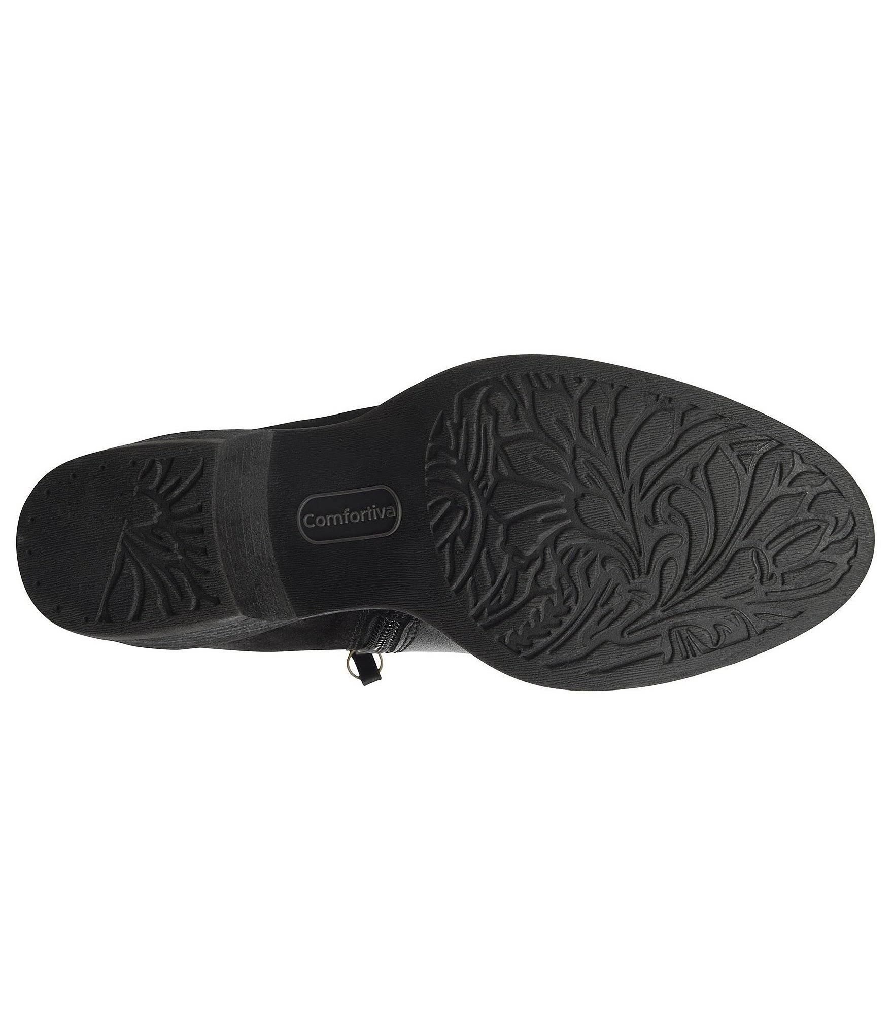 A clever mixed material design with chic details, the Comfortiva Creston Bootie is a trendy style with everyday versatility. You'll love the extra roomy toe box and the subtle curve of the Western-inspired heel. Buckle detail Extra roomy toe box Western-inspired heel.