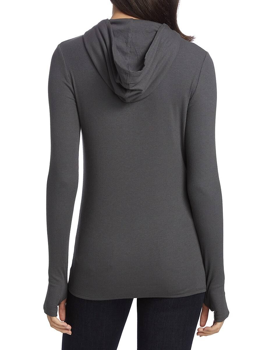 Commando Luxury Rib cotton-blend hoodie in super soft ribbed knit. Attached hood. Long sleeves; thumbhole slits. Kangaroo pocket. High stretch and recovery. Slim fit. Pullover styling. Pima cotton/modal/spandex. Machine wash. Made in USA of imported material.