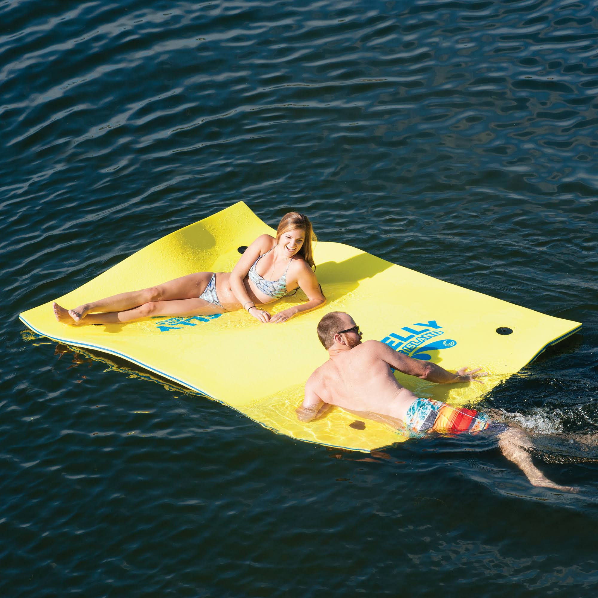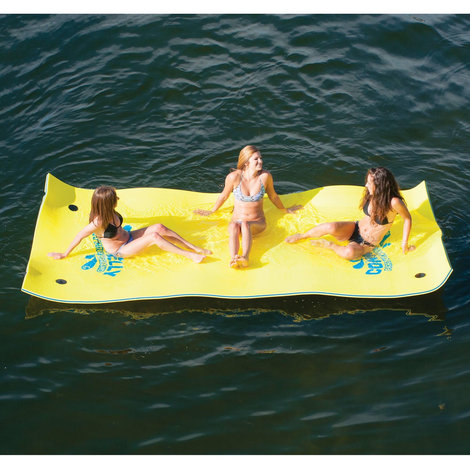Kick back and relax this weekend! Go float the lake and spend the day lounging in the sun. The Party Cove Island features 4 anchor points for strategic mooring, UV protection, 2 heavy duty webbing straps, and a nylon net bag for easy stowing. Unlike Connelly's competitors, their mat is a very bright volt yellow, so it is clearly visible out on the water. Your entire family will have a blast lounging on the Connelly Party Cove Island! Island measures (L x W x D) 8' x 6' x 1.25" (2.44m x 1.83m x 3.2cm) and is designed for 2 persons with a maximum weight capacity of 215 lbs. (97.5 kg).