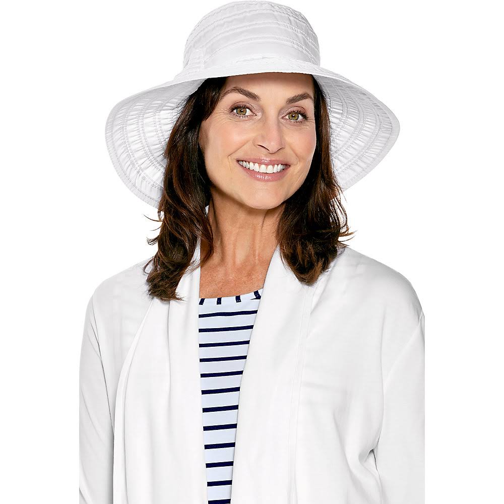 Coolibar UPF 50+ Women&s Compact in A Snap! Ingrid Ribbon Hat NP9I_WIT325