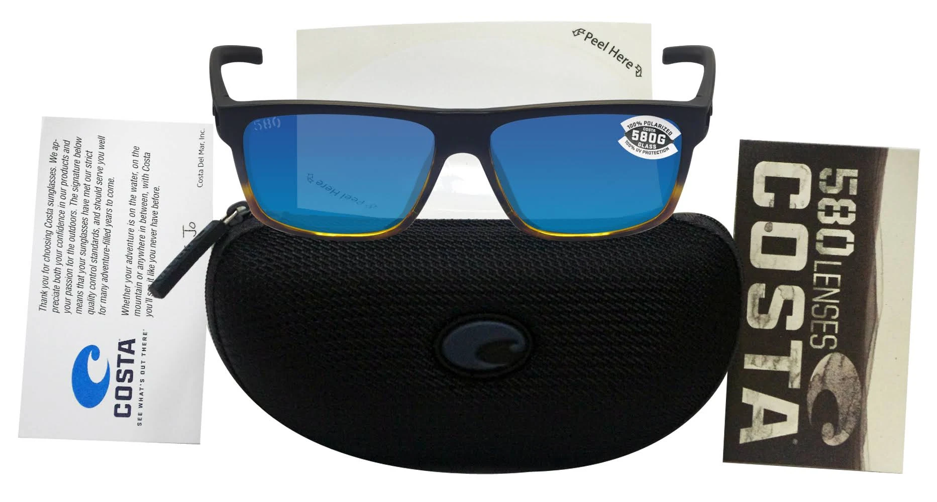 Costa Del Mar Slack Tide Polarized Sunglasses, Matte Black Tortoise / Blue Mirror / 580G Glass JZ7A_RNN573