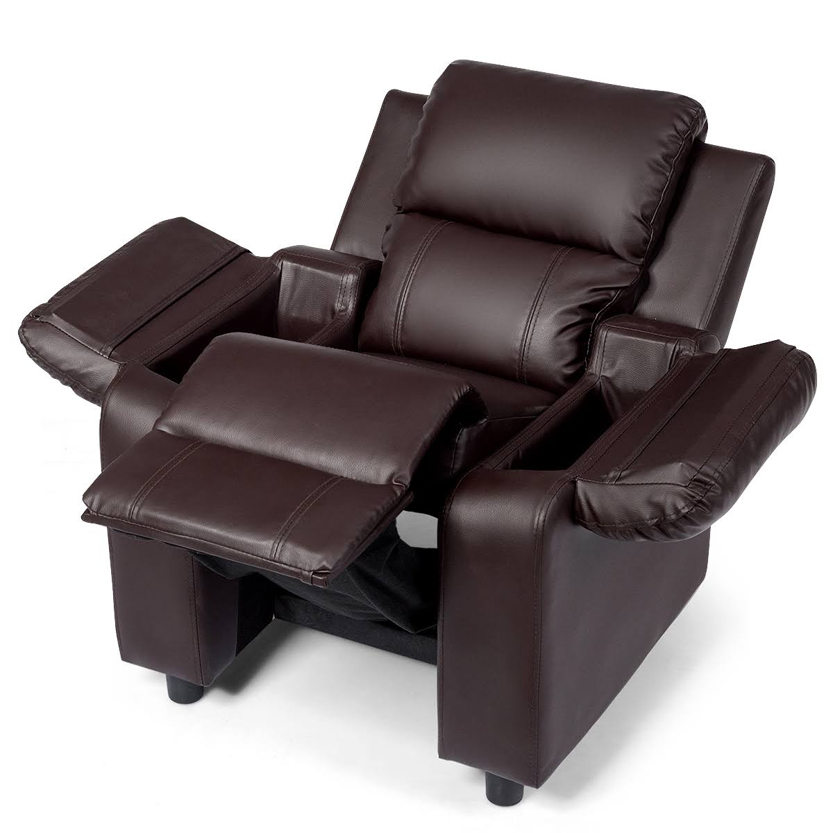 Costway PU Leather Kids Recliner with Armrest Headrest Lounge Beige EY3L_AJS141