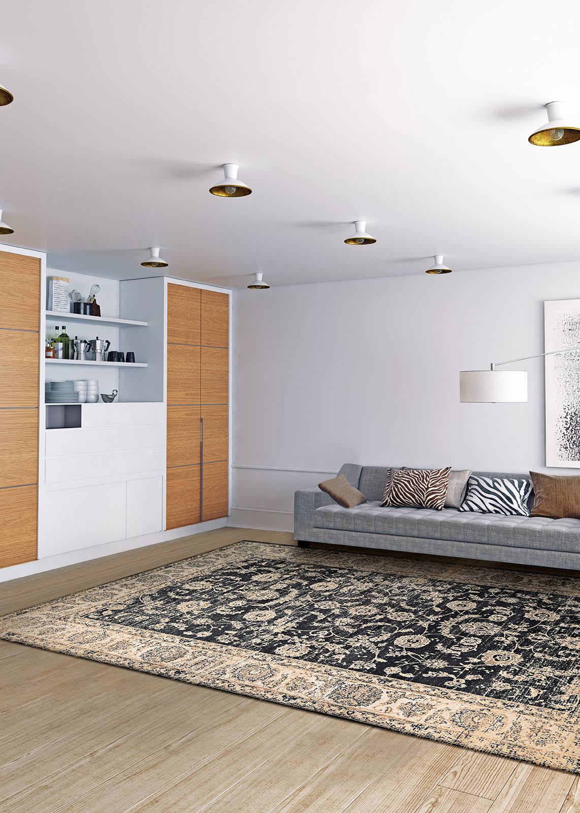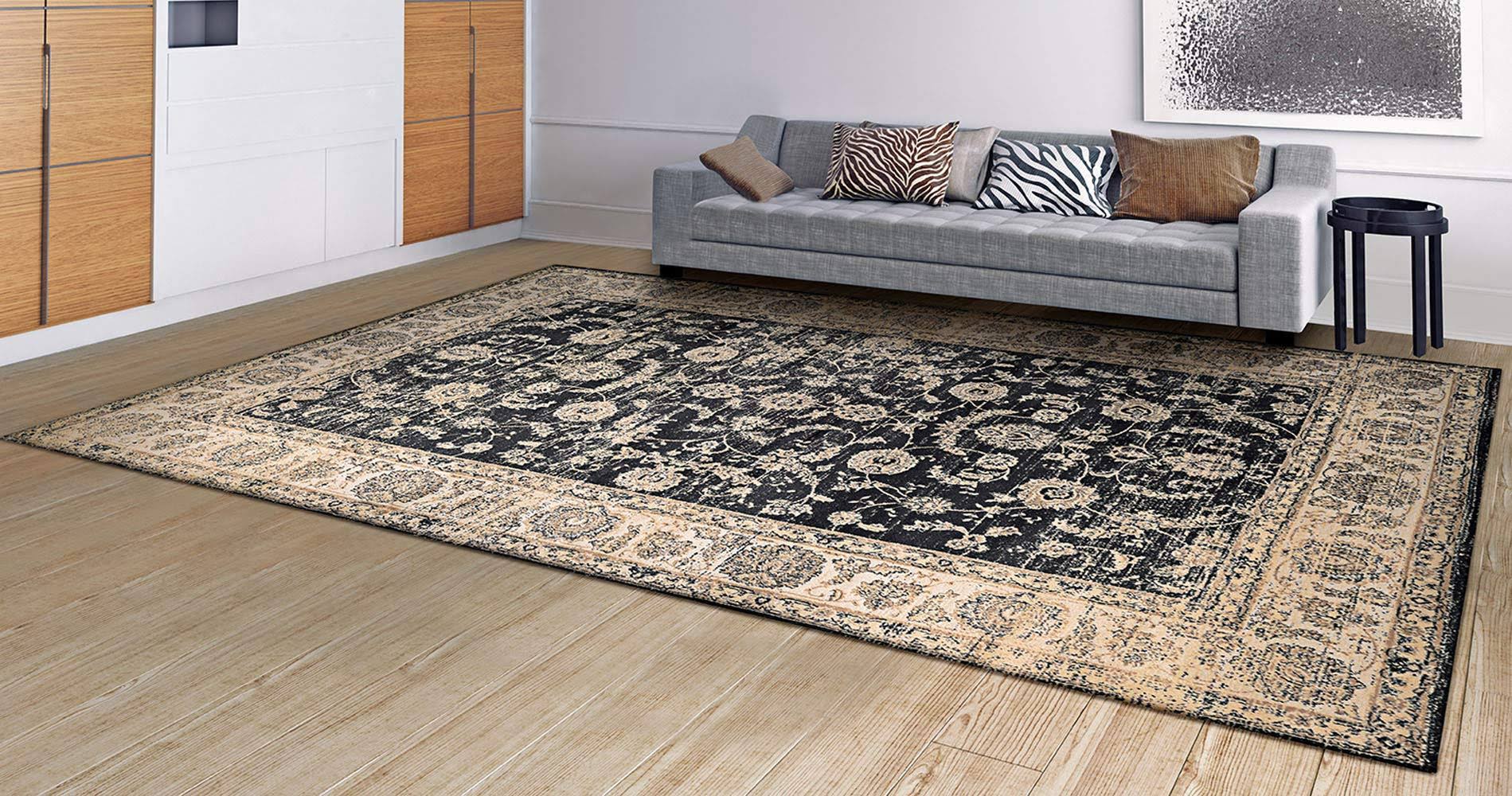 Couristan 3&11x22 x 5&3x22 Black/Oatmeal Zahara Floral Emblem Area Rug ZQ3H_DMM103