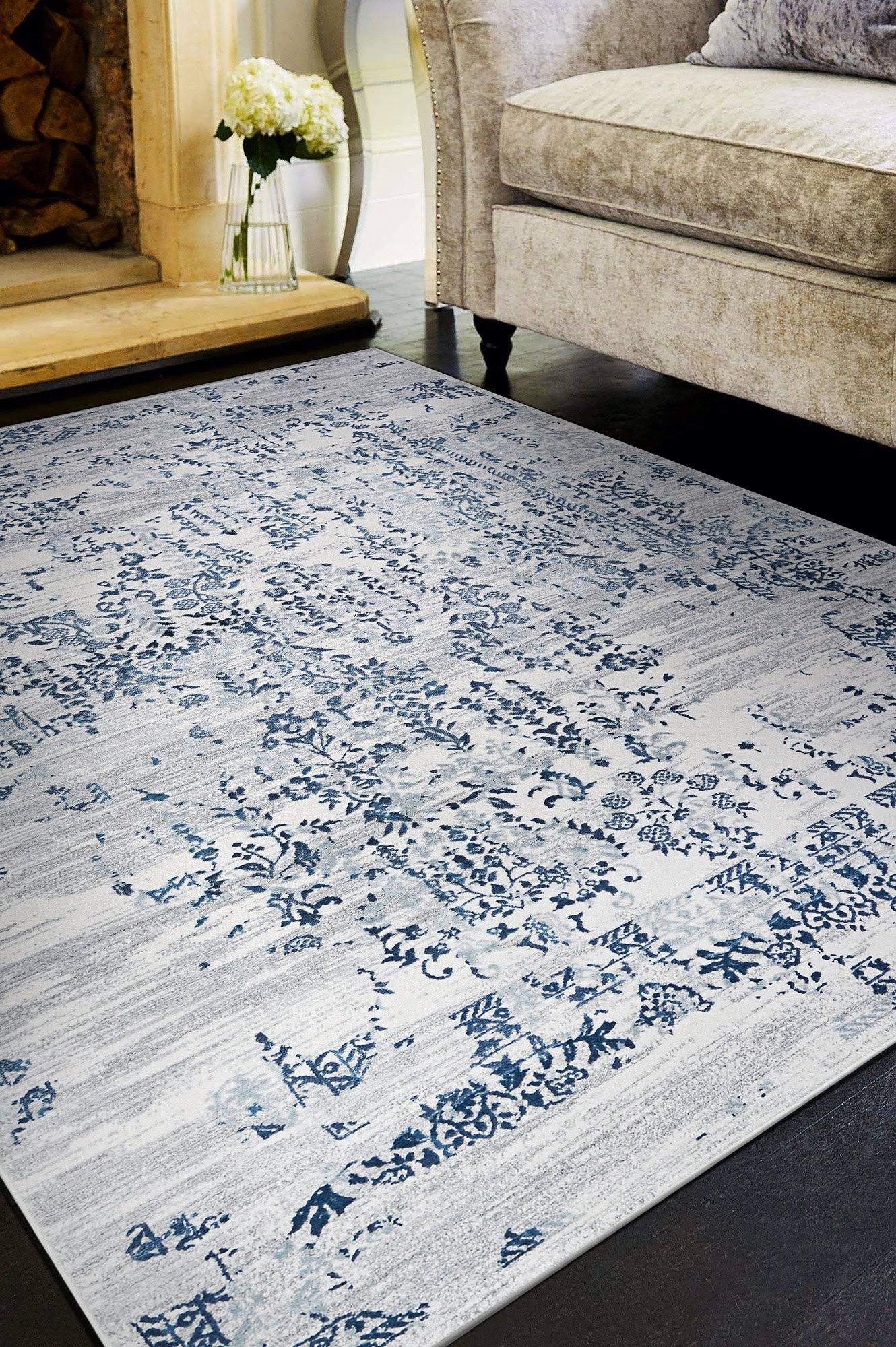 Couristan 5&3x22 x 7&6x22 Ivory/Steel Blue Calinda Samovar Area Rug CQ1I_XHS002