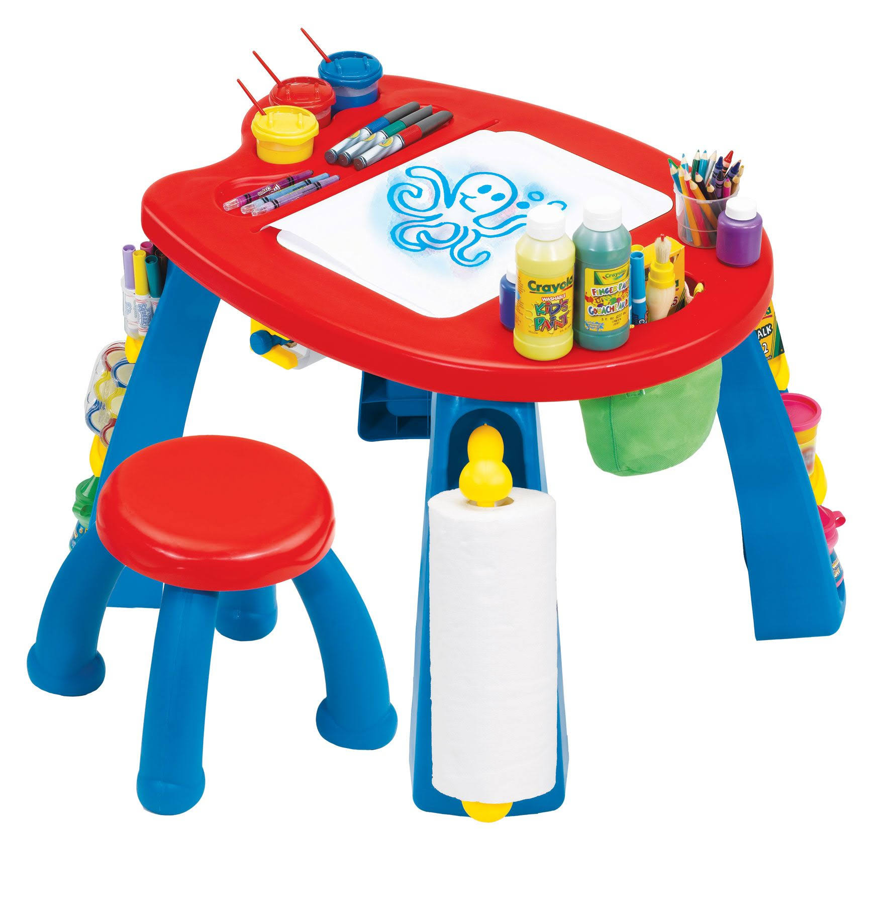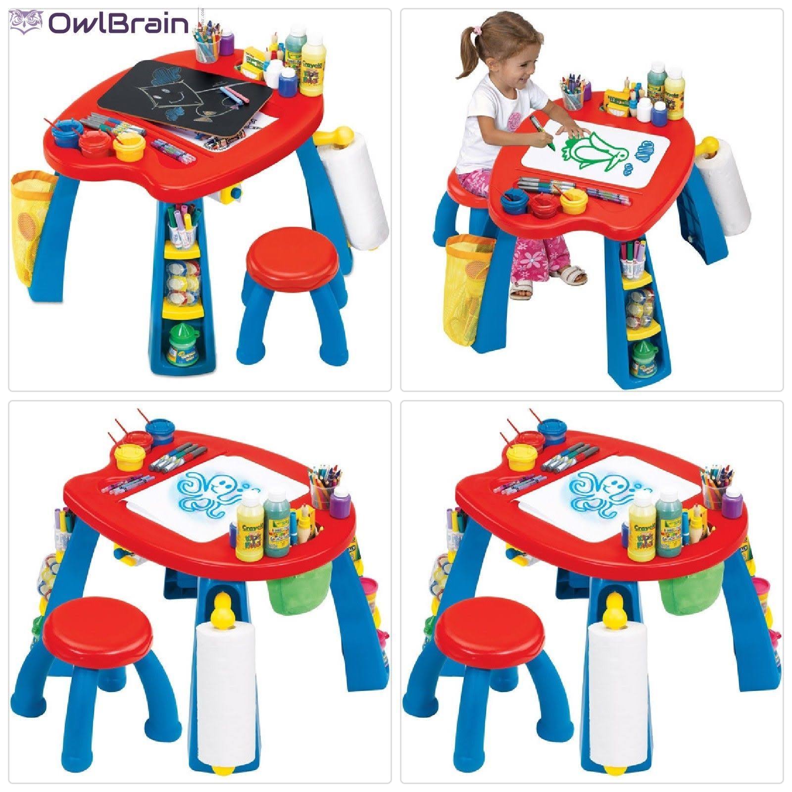 Crayola Creativity Play Station 3 years and up Adult Assembly Required The Crayola Creativity Play Station is a great addition to any children's play room. Crayola Creativity Play Station: Adult assembly required Table 1 stool Fabric pockets 3 paint cups 3 brushes 1 eraser Official Crayola license Recommended for ages 3 years and up Features : Chalkboard Surface Brand : Crayola Color : Red MPN : 5039 Weight : 9 oz Dimension : 28.00 x 24.70 x 18.20 Inches