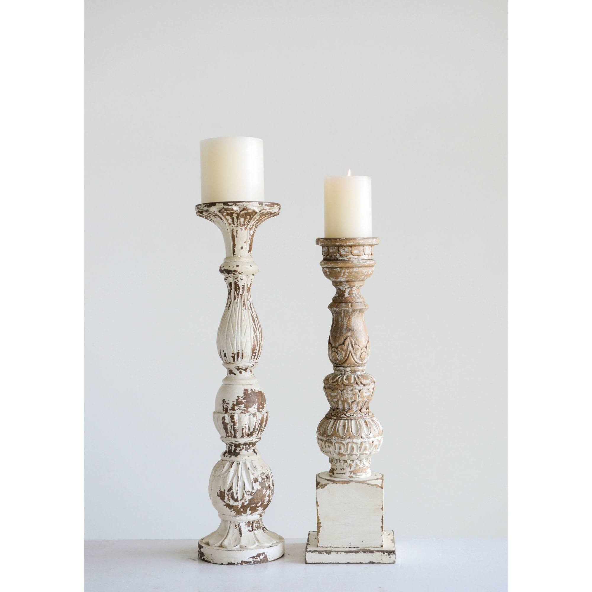 Creative Co-op Hand Carved Mango Wood Pillar Candle Holder