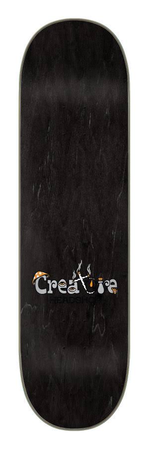 Creature Skateboards Milton Martinez Brain Gone Powerply deck with art by Jesse Thompson @jessecalifornia. Patent Pending chip resistant Powerply technology features two black layers of reinforcement material in the nose and tail, replacing the crosser wood plies of a standard 7 ply deck.
