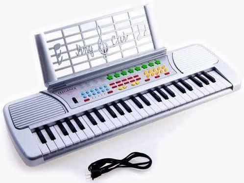 This child's keyboard is an easy and fun way for kids to learn how to play the keyboard. Research has proven that children who play an instrument do better in school, build self esteem, and make friends more easily. 49 Accordion size Keys, 8 Timbres, 10 Rhythms, 8 Percussions, 8 Demonstration Songs, 25 Speed Adjustable Tempo, Chord / Vibrato / Sustain / Fill in Bass, Auto Bass Chord Function / Single Finger and Fingered, Chords Large Scale Integration / Matrix Controlling, Dimensions: 34 inch (L) x 14.5 inch (W) x 5 inch (H), DC 9V/AC 110V, For Ages 3 12. Uses batteries (not included) or power connector (Included).