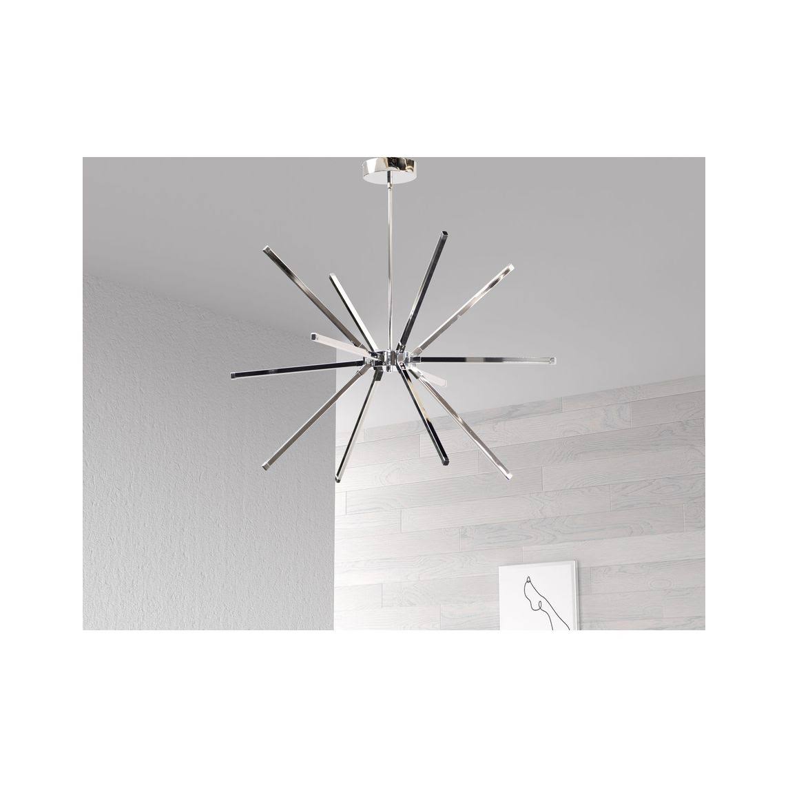 The Array LED Chandelier by Dainolite is a sleek and minimalistic update of the recognizable sputnik style fixture. A single down rod descends to hold a metal disk that an array of slender, beautifully finished, metal arms extend from. Each arm is neatly capped at their end, lending a tailored look to this chandelier as acrylic diffusers evenly filter a layer of energy-efficient light onto surroundings, dressing up rooms with a bright and elegant touch. Shape: Sputnik.