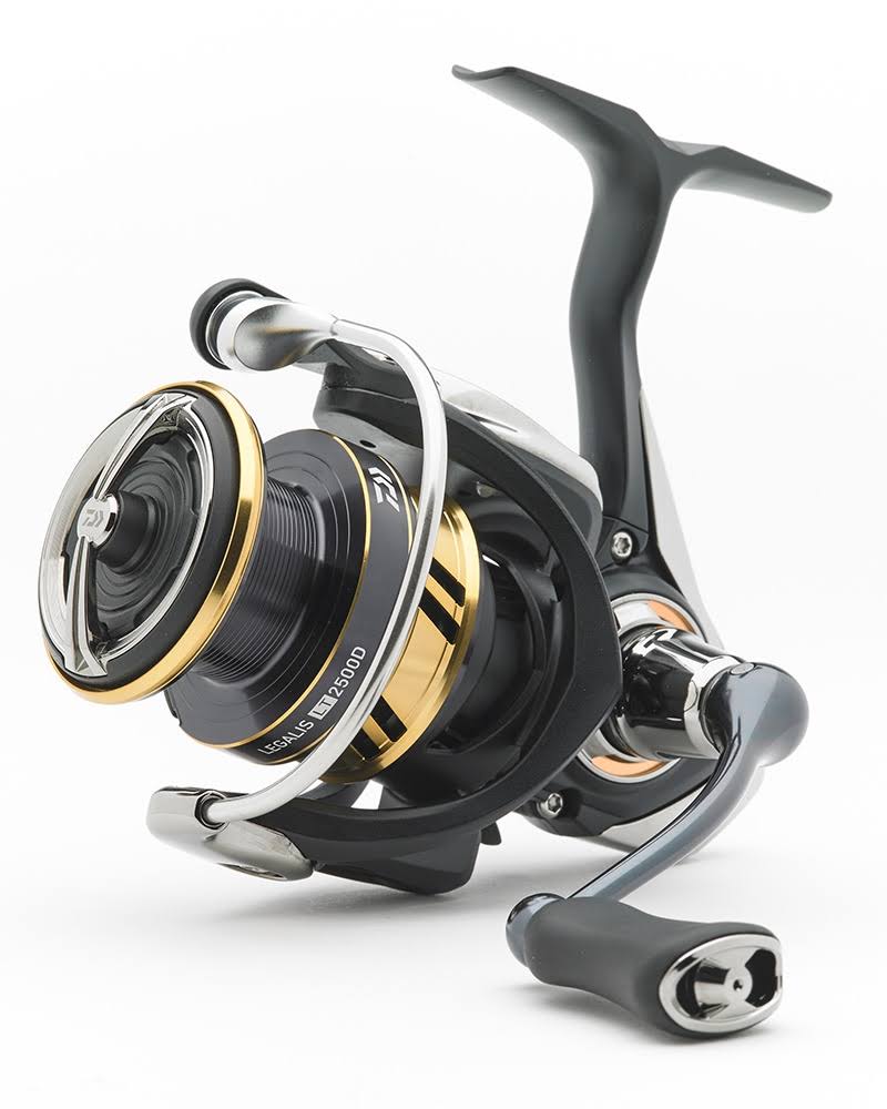 Daiwa 17 LEGALIS LT With a stark, modern appearance, the handsome reels are modestly priced with an abundance of design and engineering features. The LT body (light yet tough) is constructed from a carbon-based composite that is much lighter than conventional materials yet very durable. With a much greater strength to weight ratio, the reels are lighter and can be handled without fatigue over the long course of a full day's fishing. The spool design features the Advanced Ballistic System or ABS. This technology utilizes a reversed taper to pay out line in bigger loops reducing outgoing friction and improving casting distance. The oversize spool also holds more line and can exert more pressure on hooked gamefish. The Air Rotor and Air Bail are carbon composite designed lighter and stronger than conventional designs. Smoothness of operation is assured by 6 ball bearings and a roller bearing. Rarely in the spinning reel market can you find a reel modest in price yet loaded with state of the art technical and design features. The Daiwa Legalis LT is that reel. LT Light & Tough AirBail DS5 Body DS4 Rotor Tough Digigear ABS spool ATD drag Machine cut Aluminium handle Soft touch Handle knob New generation line clip