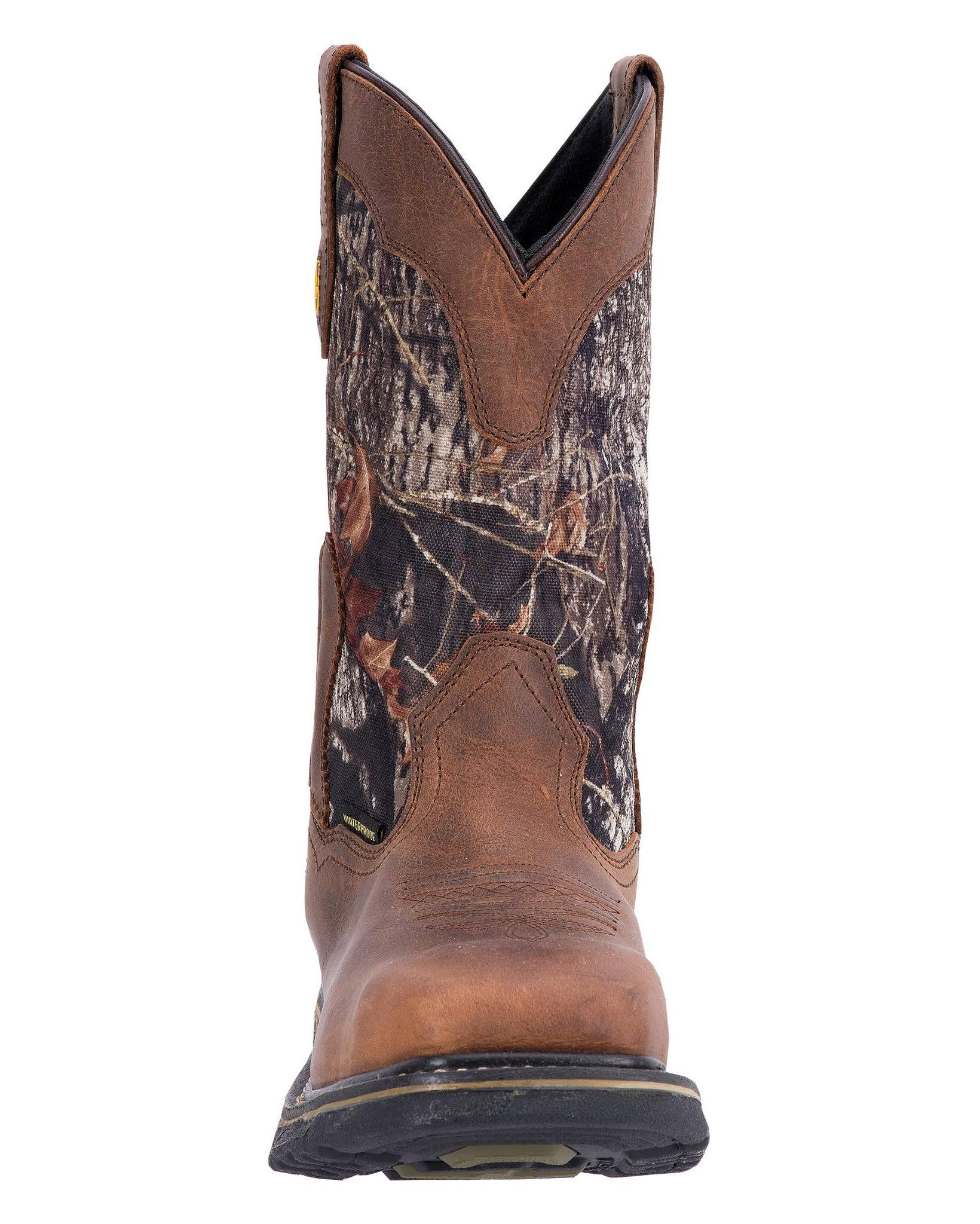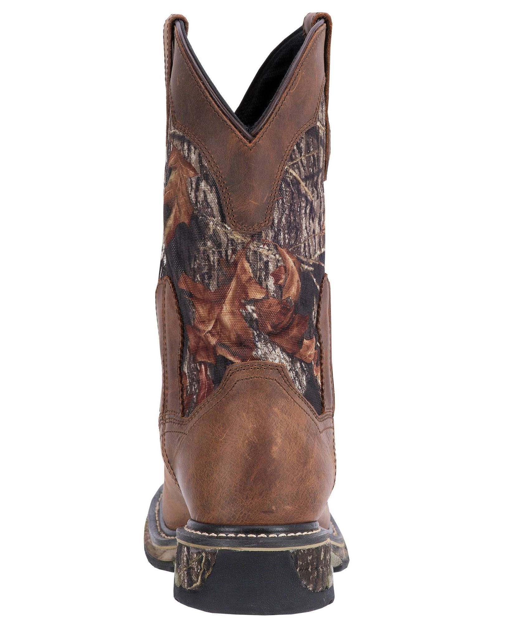 Introduced in the mid-1960s, the Dan Post brand is synonymous with Handcrafted Cushion Comfort. Crafted with the finest exotic skins and premium leathers, Dan Post employs technologically advanced materials to ensure that your boots are comfortable from the first step. These men's working boots feature Mossy Oak Camo leather shaft, 11'' height, breathable waterproof membrane, broad square toe, ultra light outsole, work unit heel. Material: Leather.