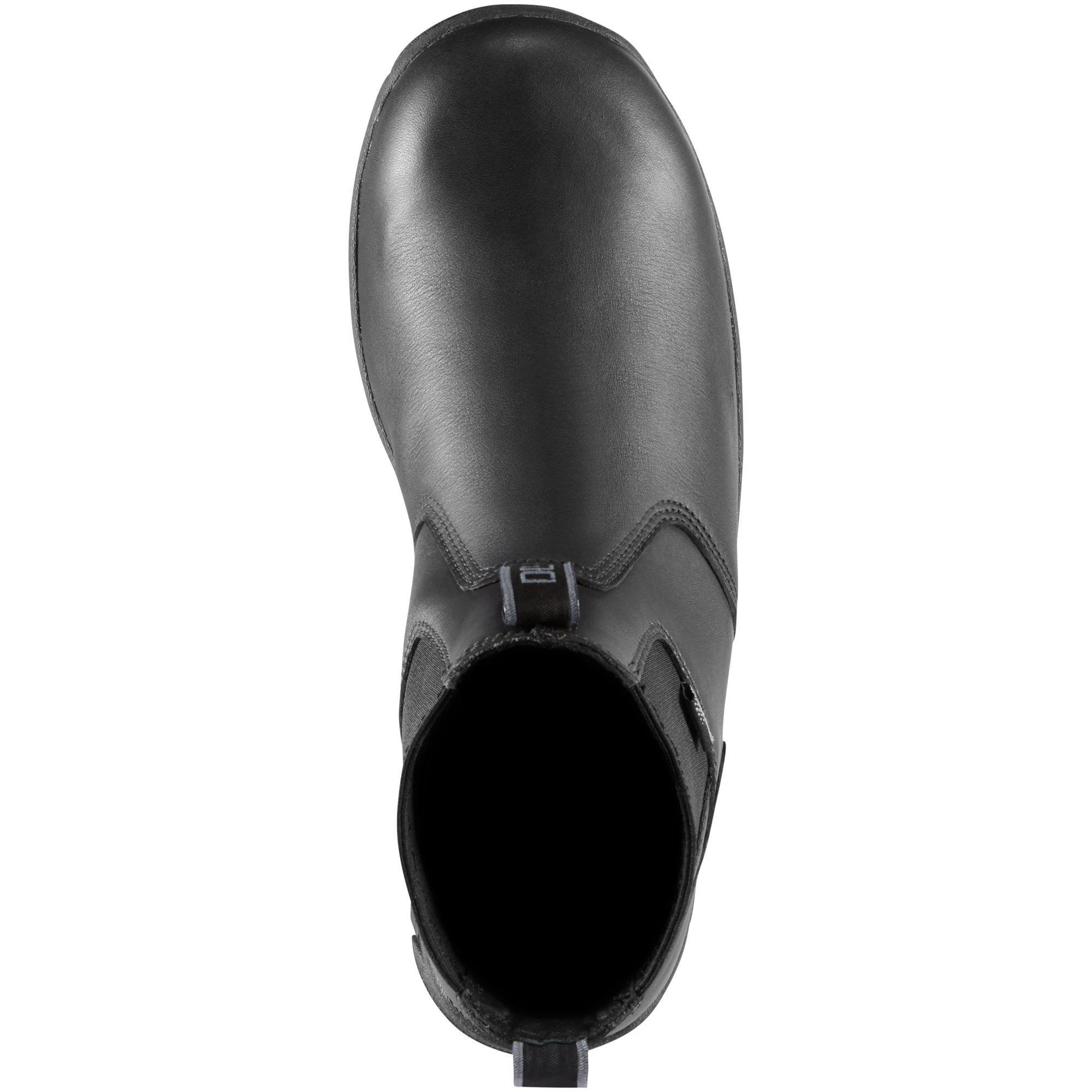 The men's Danner Lookout Station office work boot has what you need to be safe, compliant and comfortable at work. You will appreciate quality materials and construction. This 5.5 inch pull-on has a polishable full-grain black leather and nylon upper. Danner Dry waterproof protection will keep feet dry. Pull tabs on the front and back of these chukka-style boots help you to pull them on. Generous stretch side panels give a little for placement and then retract back into place, securing fit. Ankles won't show at this height and will be supported. This station office boot has a composite protective toe that meets or exceeds ASTM F2413 standards for impact and compression, keeping toes safe from dropped objects and rollover. This boot meets the same ASTM standard for electrical hazard resistance. A Danner Lookout rubber outsole provides excellent footing with a slip-resistant low pentagonal lug pattern that allows quick maneuvers on a variety of surfaces. You will want to wear these boots every day. With the Danner Comfort System platform, you get superior support and comfort. An Airthotic heel clip provides support; while the dual-density footbed with underfoot venting provides long-lasting cushion and promotes air flow. Toes get a little more wiggle room inside a broad toe box. These Danner boots with easy pull-on construction and safety features will quickly become your favorites. Pick up your pair of Danner Lookout Station Office work boots today.