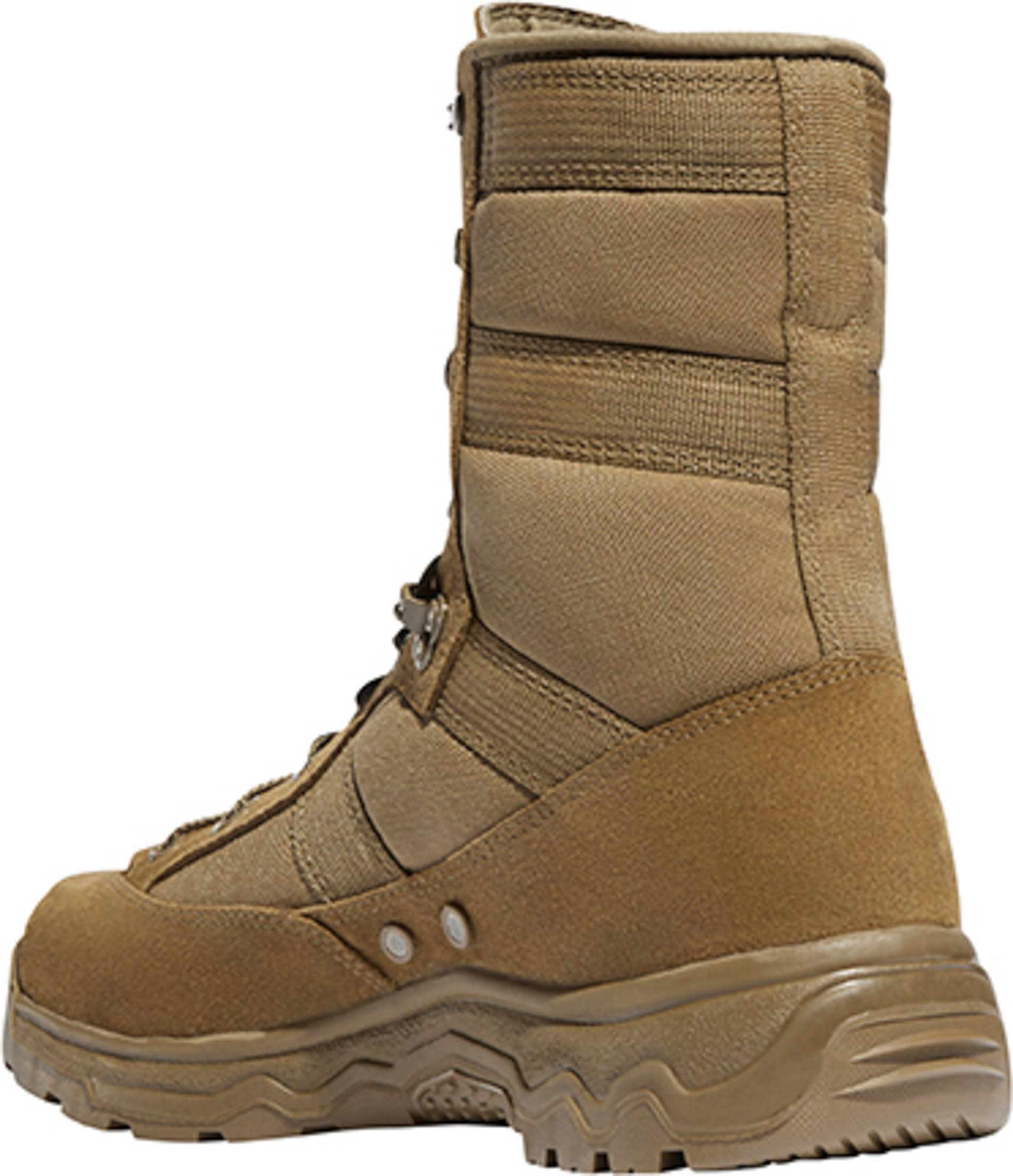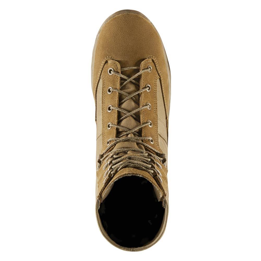 The modern battlefield isn't symmetrical. It's complex and fluid with ever-shifting terrains and conditions. The reckoning is the game changer for 21st-century combat. Nothing less will suffice. The result is a boot that's lightweight, comfortable, streamlined, and configurable to fit any theater or uniform. Danner service men and women are a force to be reckoned with and this boot embodies that spirit. Details: suede and nylon upper, moisture-wicking air mesh lining and ventilation technology for comfort in hot weather, ega certified us marine corps eagle globe and anchor emblem at the heel, usmc approval no 150m24-001130-6hw, double rivet speed lacer for secure heel lock with lace-to-toe upper design for adjustable fit, removable open-cell polyurethane footbed provides superior shock, danner vibram all-terrain dat platform. This streamlined, lightweight platform features both vibram midsole and outsole material compounds that were calibrated for shock absorption and comfort. The rubber outsole was engineered for high mileage durability. An omni-directional pentagonal outsole lug pattern gives superior traction from all different angles, double-bevel tread prevents debris from compacting in the outsole and the arch tech grip design provides traction and grip for roping and climbing. To accommodate more people danner made this boot in extended sizes, they recommend women select 1.5 To 2 full sizes down for correct fit. Material: suede, nylon, mesh, rubber, man made.