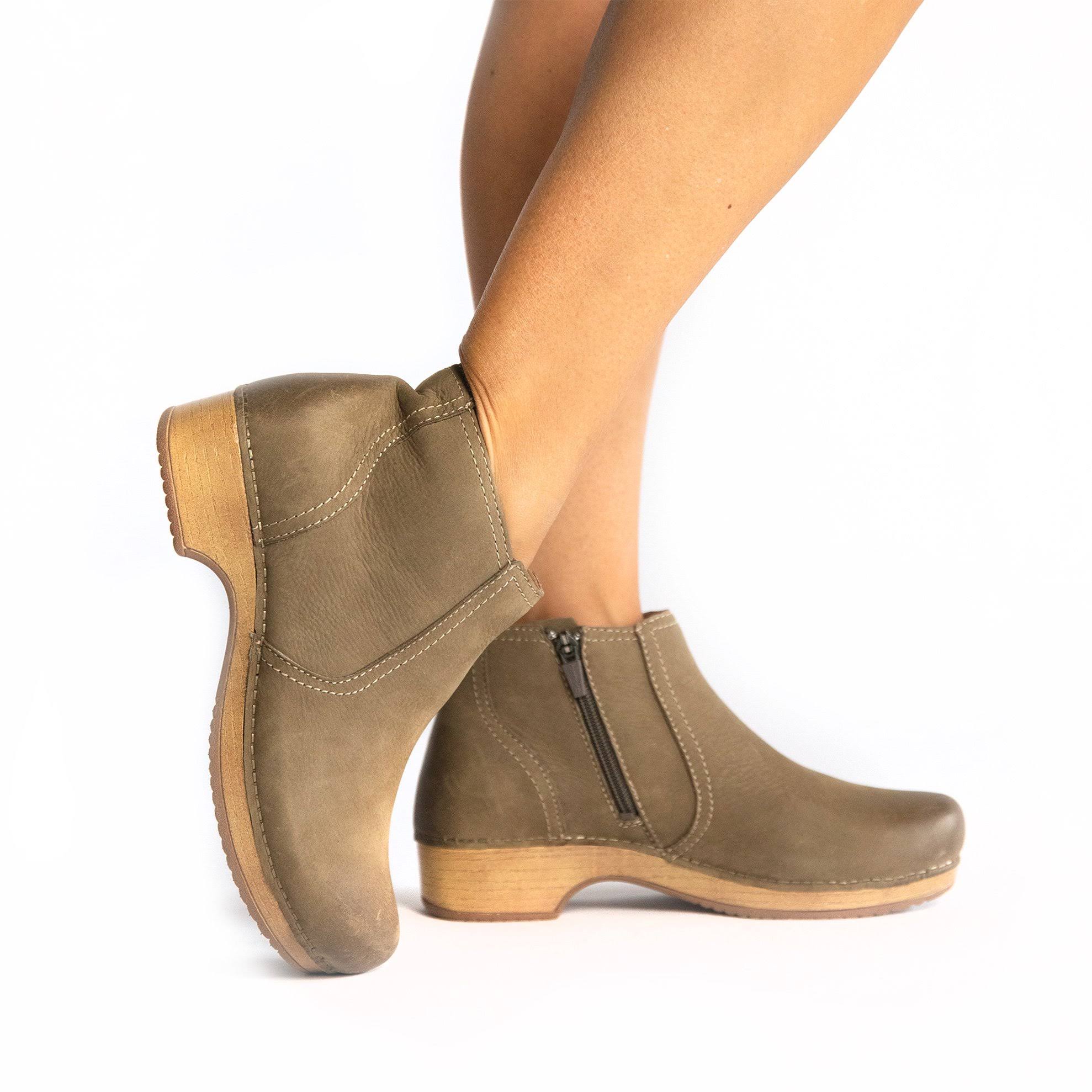 A Best Seller. This minimalist bootie with a clog-like heel will complete your everyday look with chic comfort. Pair with high-waisted bell bottoms and a bodysuit for a boho-vibe.