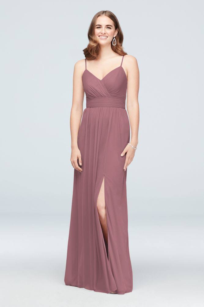 David&s Bridal Spaghetti Strap Ruched Waist Mesh Bridesmaid Dress - Quartz (White), 22 NX3P_NHS454