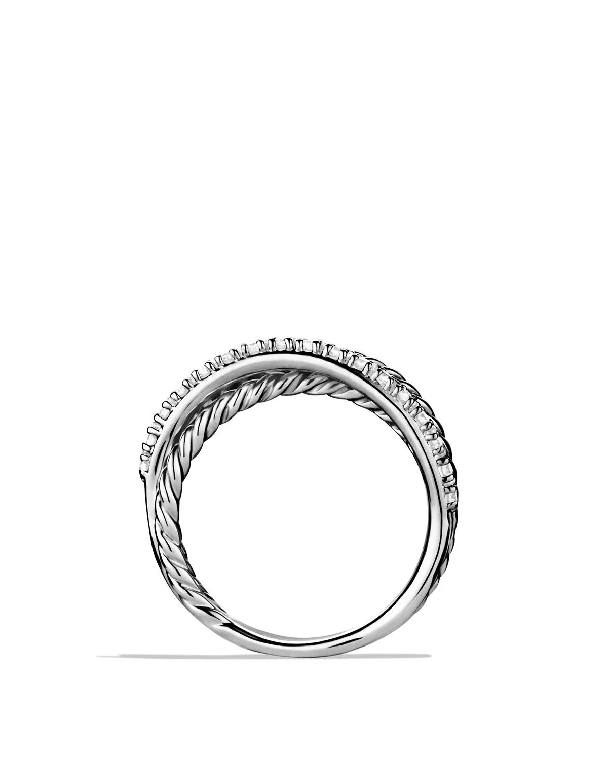 Sterling silver. Pavé diamonds, 0.18 total carat weight. 7mm wide. By David Yurman; made in the USA. Style Name:David Yurman 'Crossover' Ring With Diamonds. Style Number: 313384.