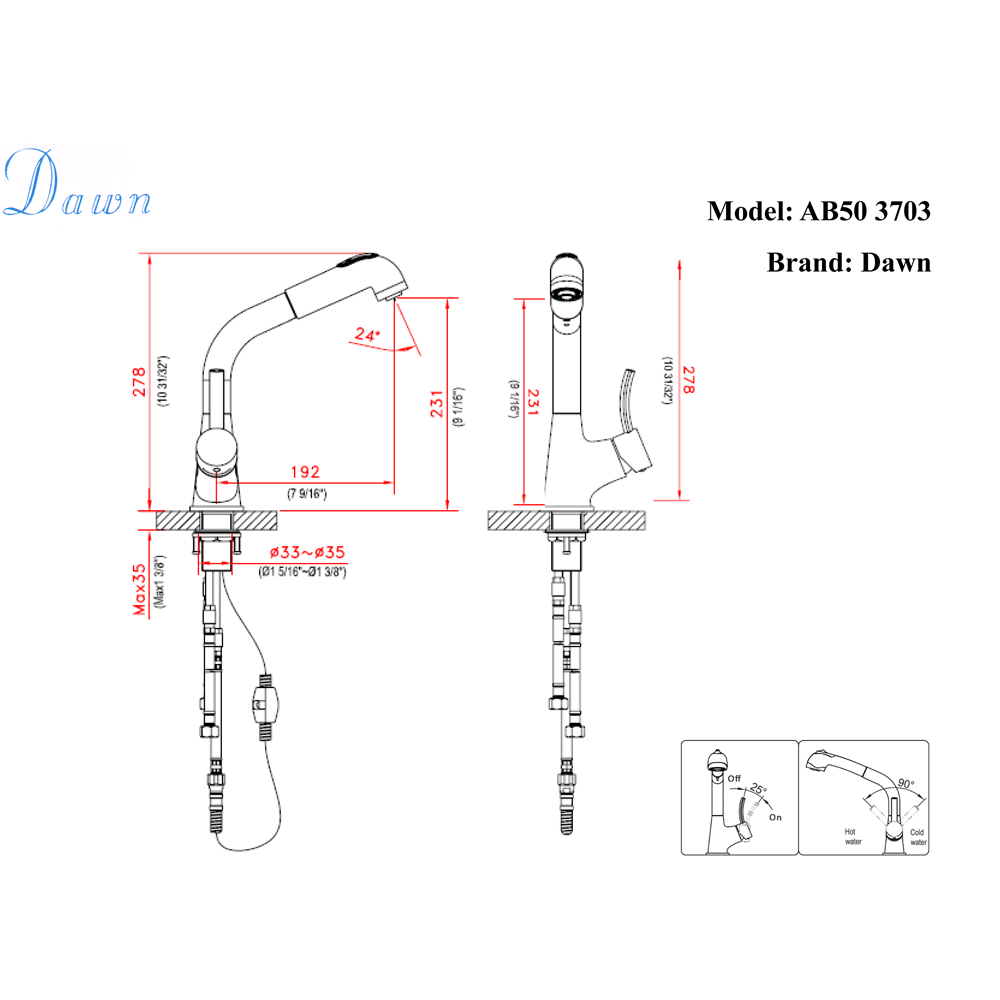 Dawn AB50 3703C Single-Lever Pull-Out Spray Kitchen Faucet Chrome LD4T_JGN075