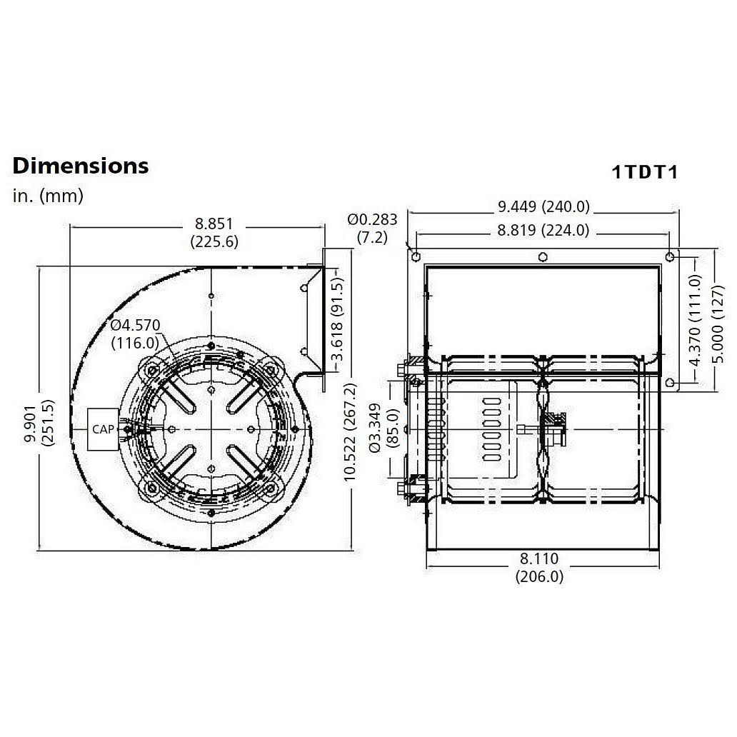 Dayton 1tdt1 Blower 458 CFM 1530 RPM 230V 60/50Hz (5C507) WC0M_WXB033