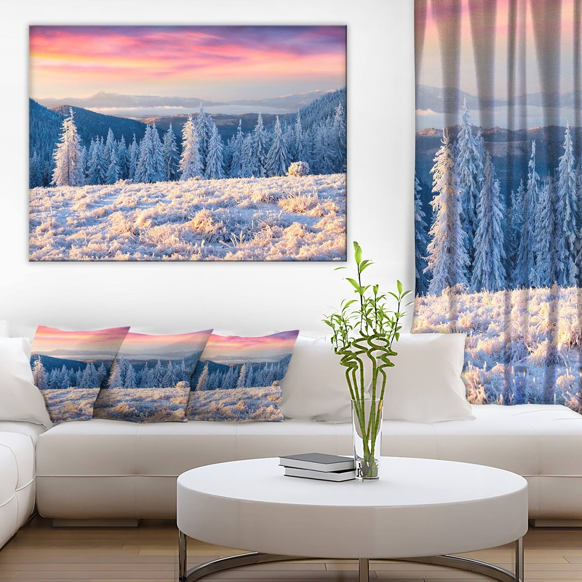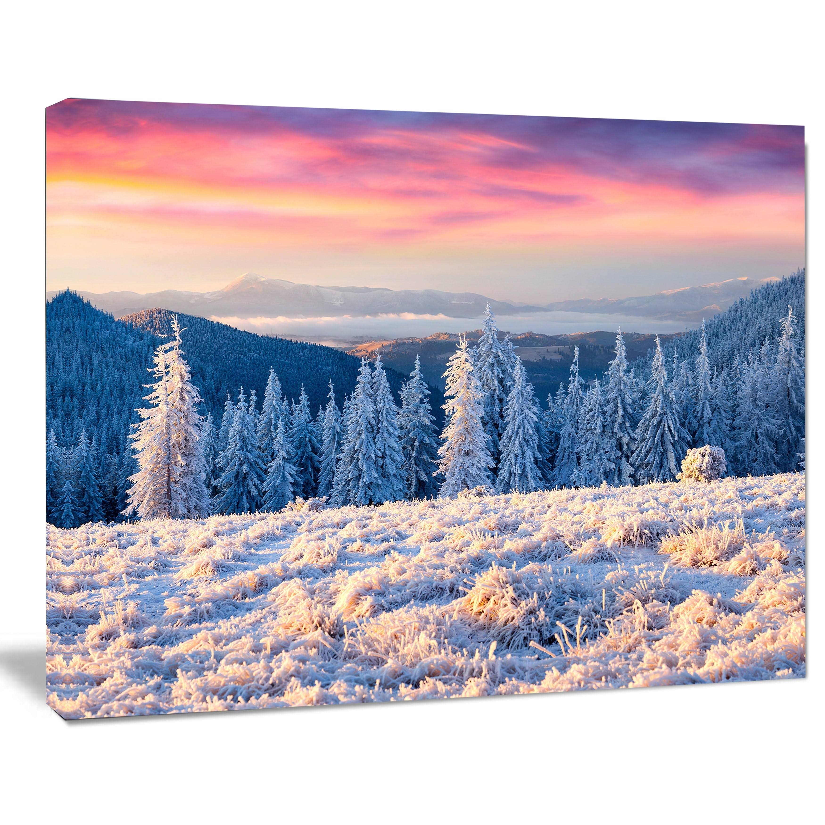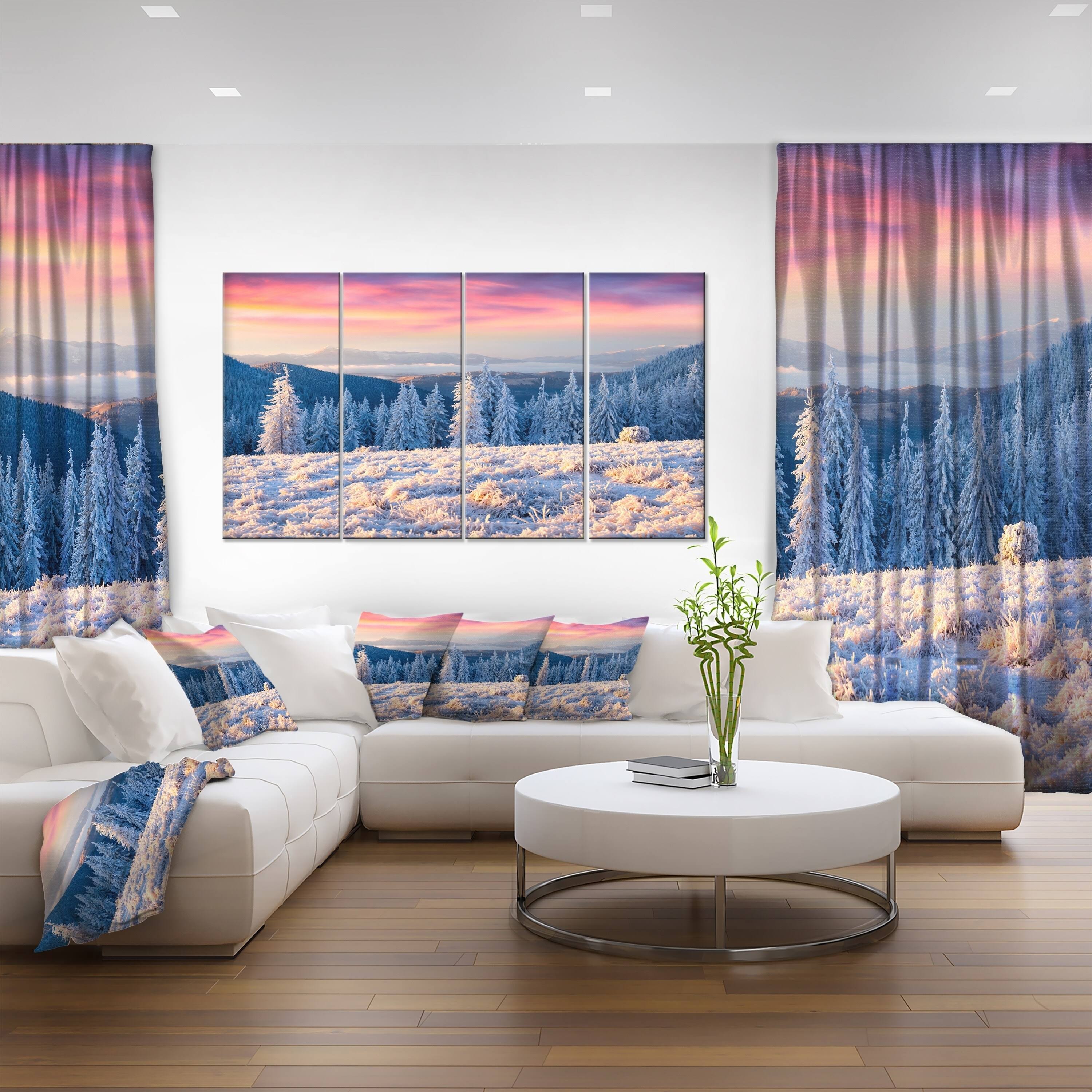 Design Art &Amazing Winter Sunrise in Mountains& 4 Piece Graphic Art on Wrapped Canvas Set, White MM7N_CQW062