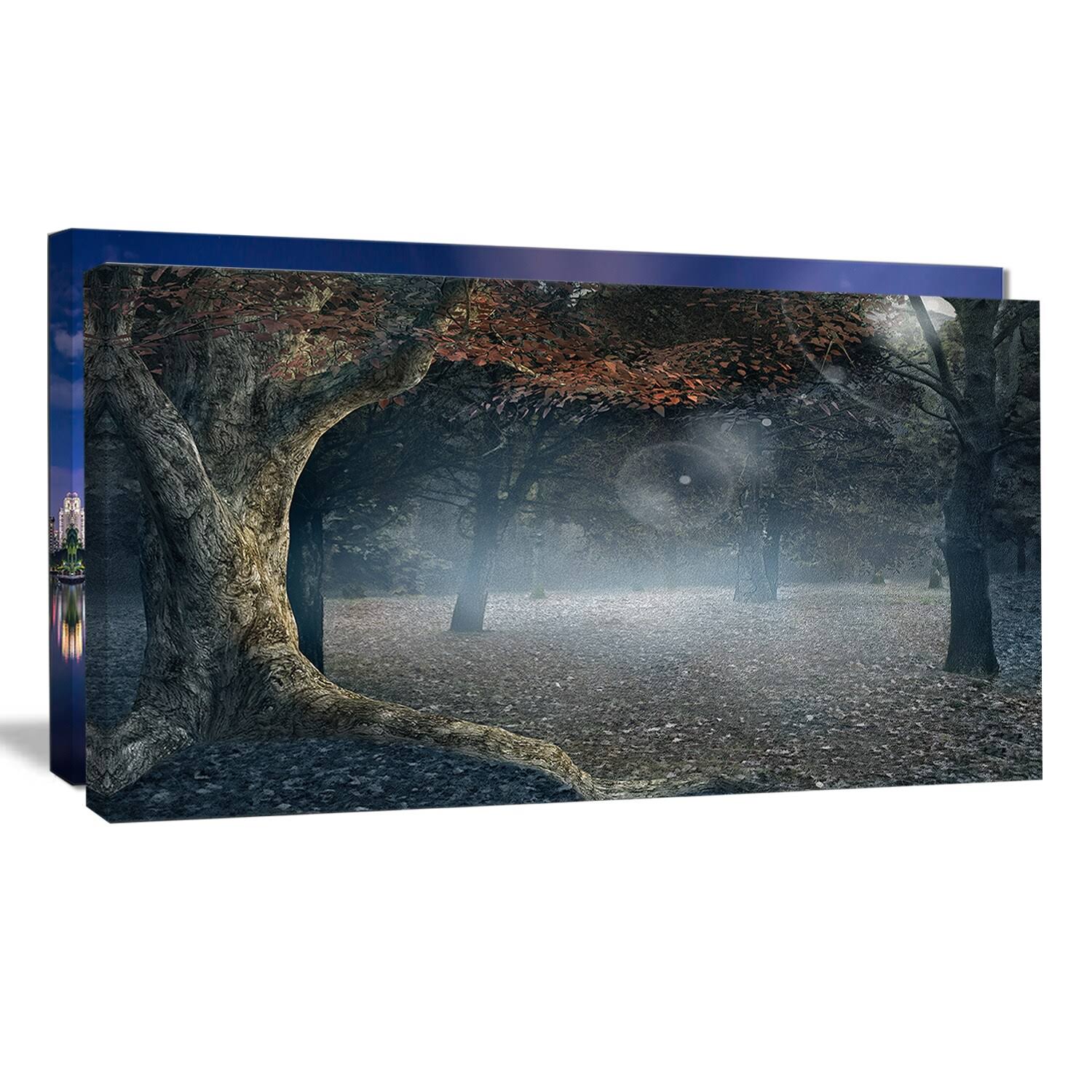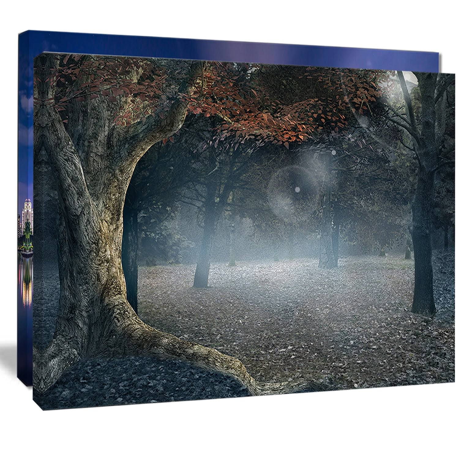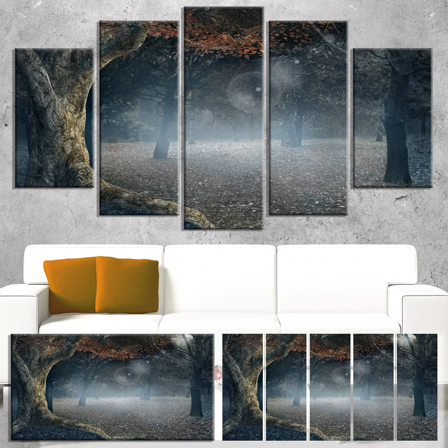 Design Art &Big Trees in Dark Foggy Forest& 4 Piece Graphic Art on Wrapped Canvas Set, Blue GV0W_HEA774