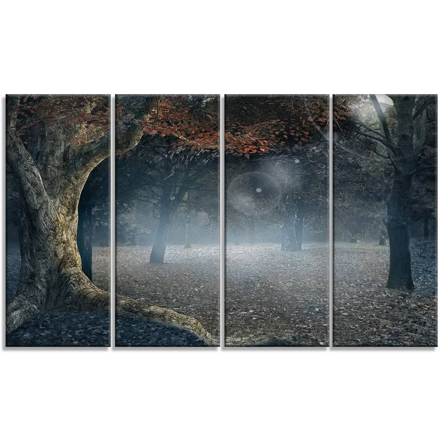 Design Art Big Trees in Dark Foggy Forest - Landscape Photography Wall Art - Blue, 60 in. Wide x 32 in. High - 5 Panels Diamond MU5W_EAF363