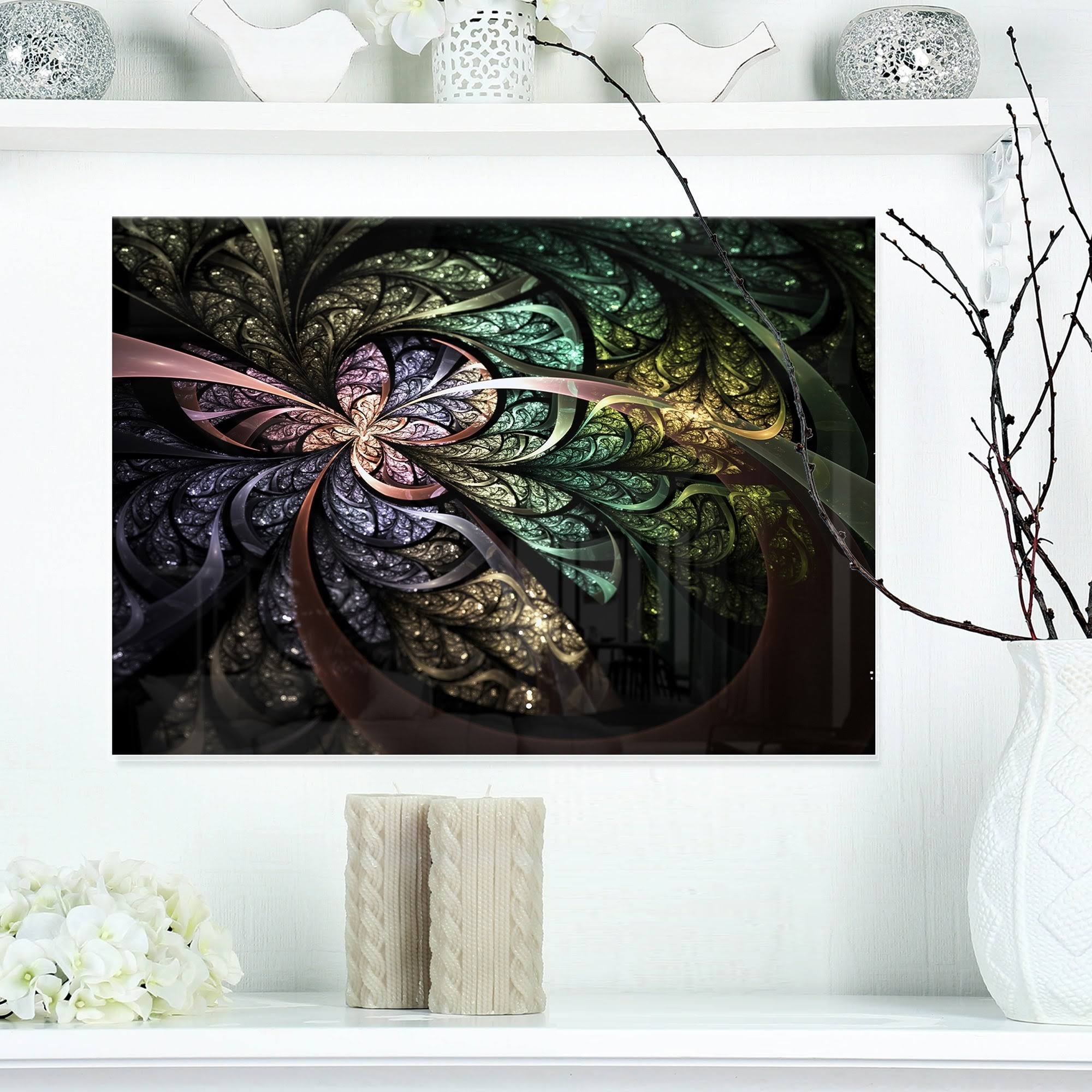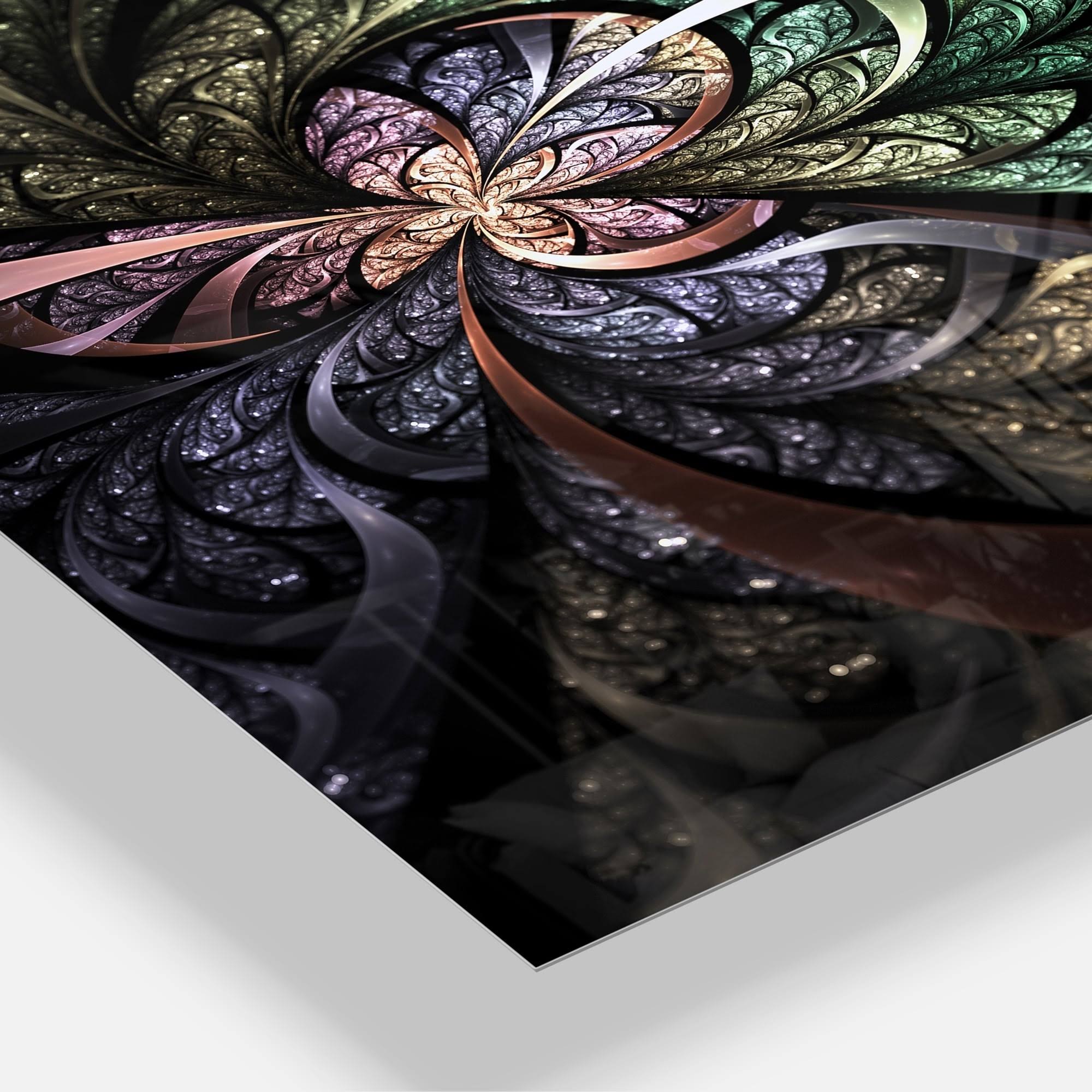 Design Art Brown Blue Fractal Flower Digital Art - Large Floral Glossy Metal Wall Art, Size: 20 in. Wide x 12 in. High, Green XL8F_HAJ250