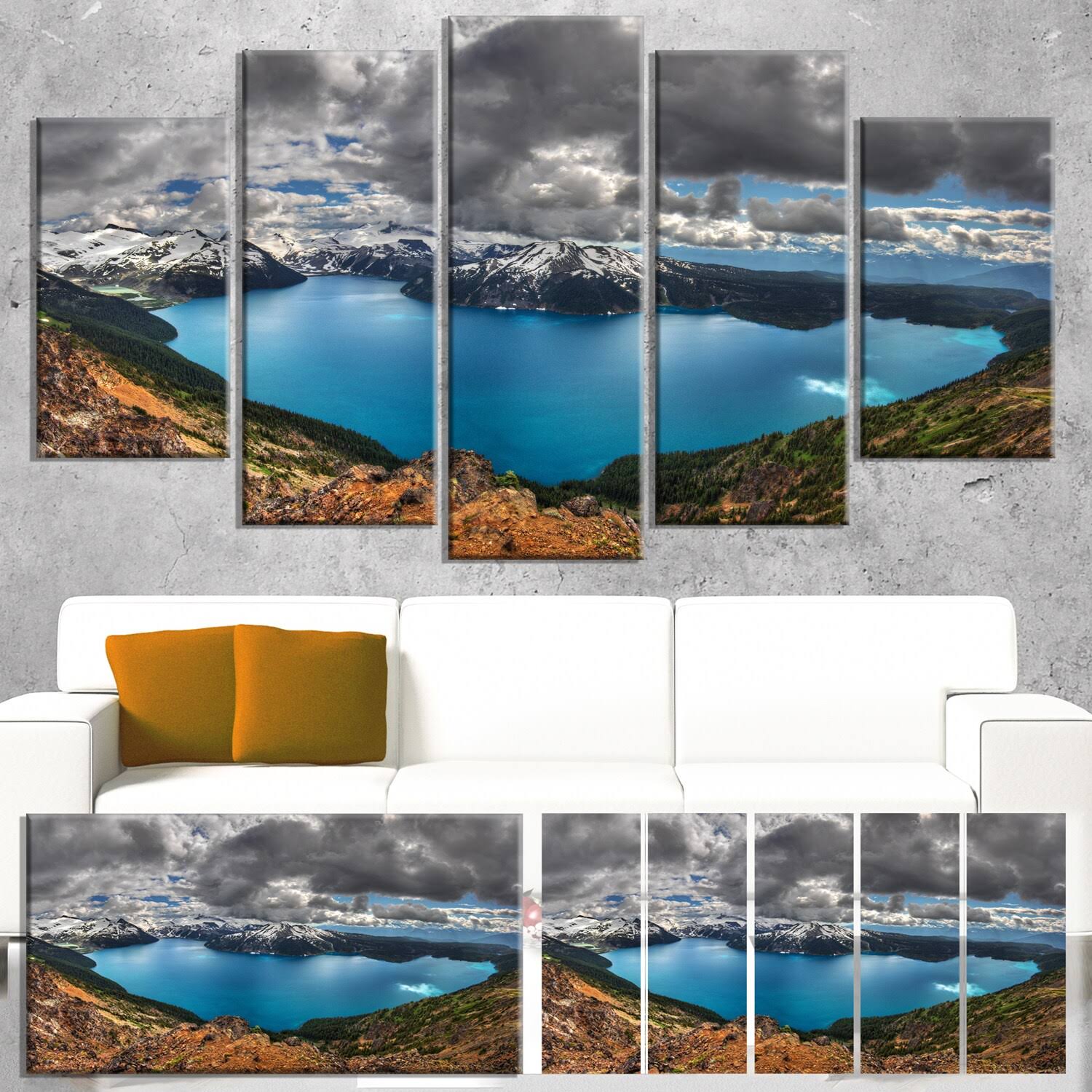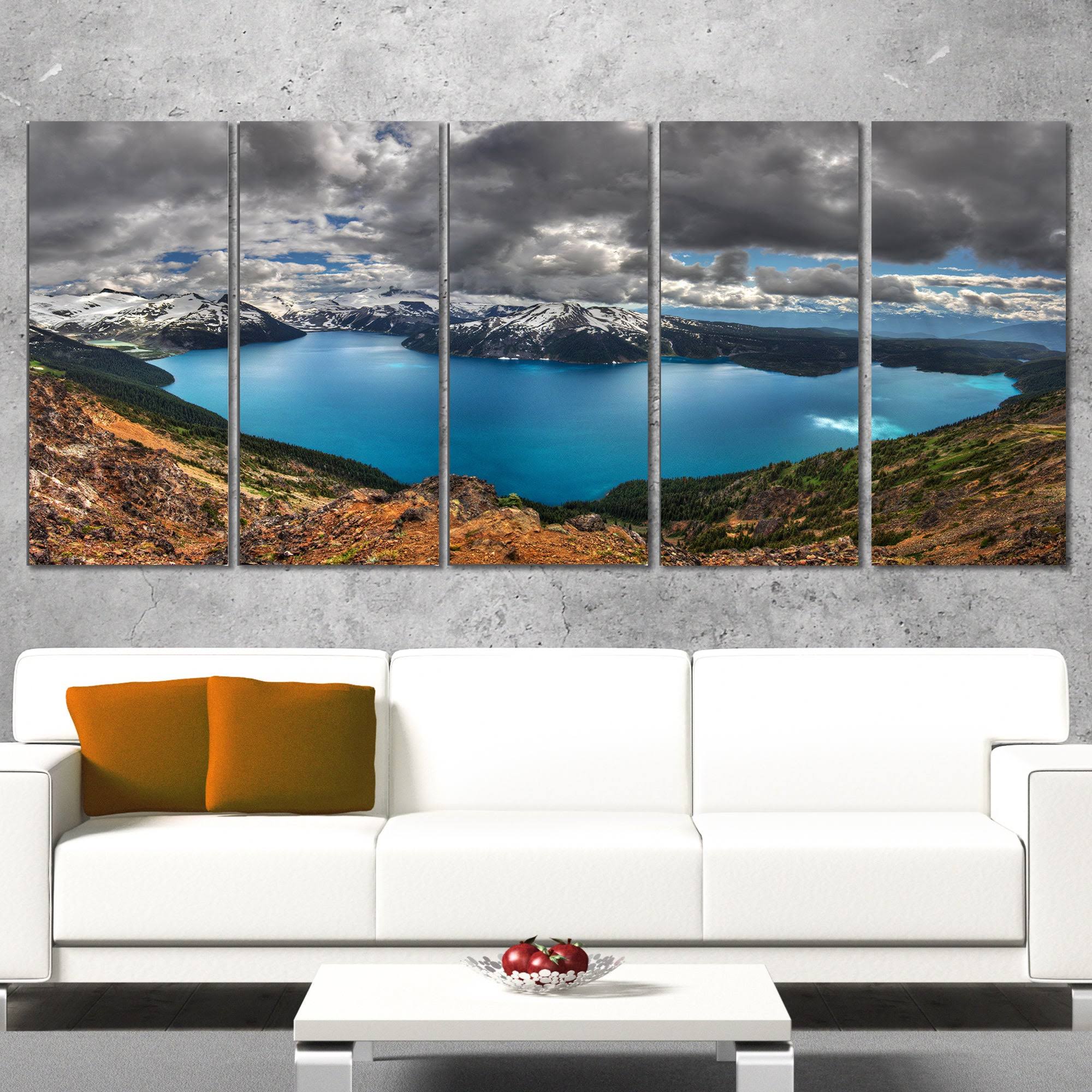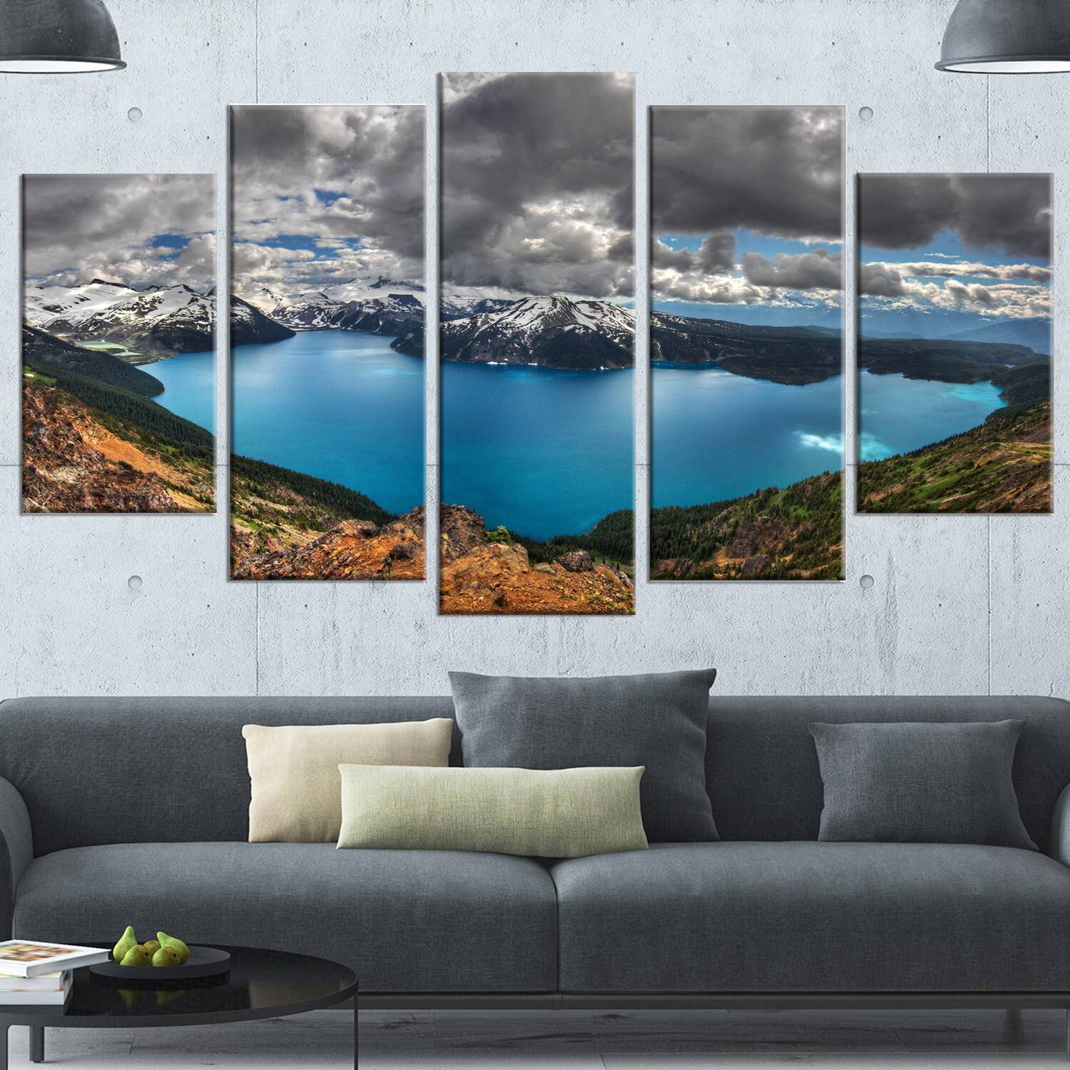 Design Art &Lake Surrounded by Mountains& 5 Piece Photographic Print on Wrapped Canvas Set, Blue BE5O_XGR604