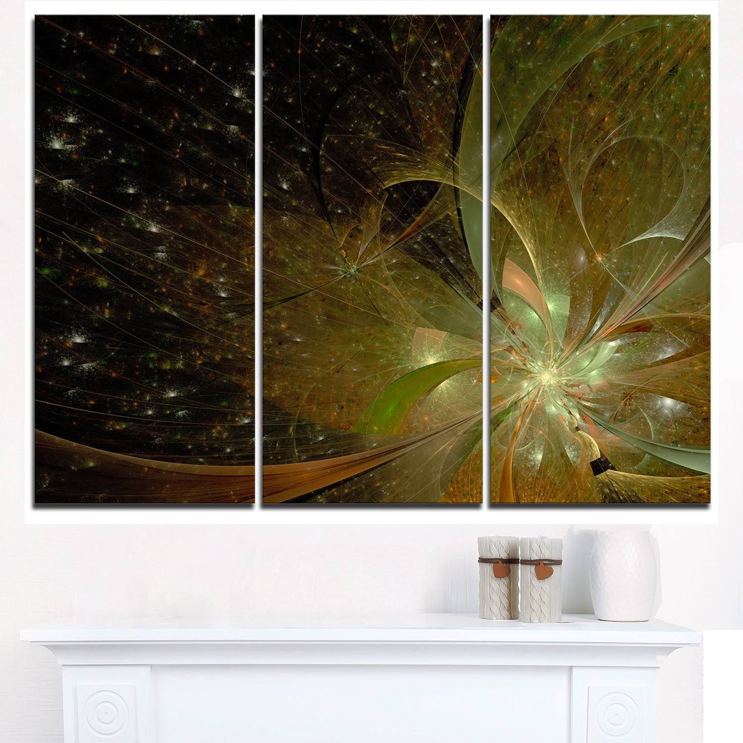 Design Art Light Golden Symmetrical Fractal Flower - 3 Piece Graphic Art on Wrapped Canvas Set, Black JI6N_UOQ433