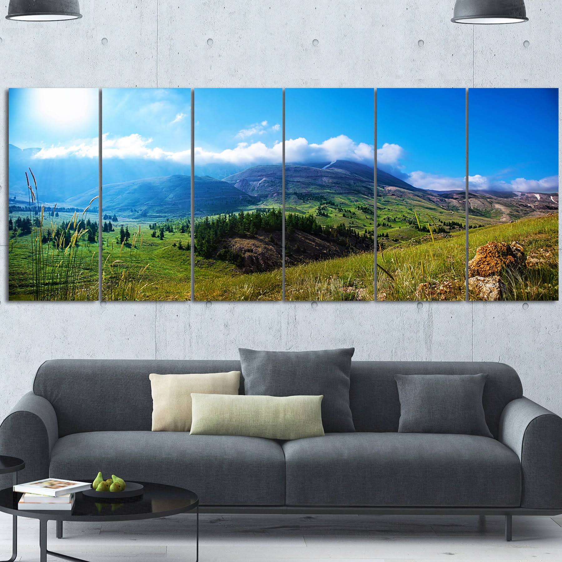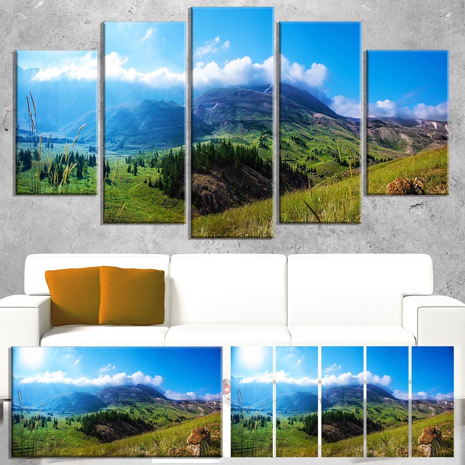 Design Art 'Mountain Landscape Panorama' 5 Piece Photographic Print on Wrapped Canvas Set, Green UX0P_FWC829