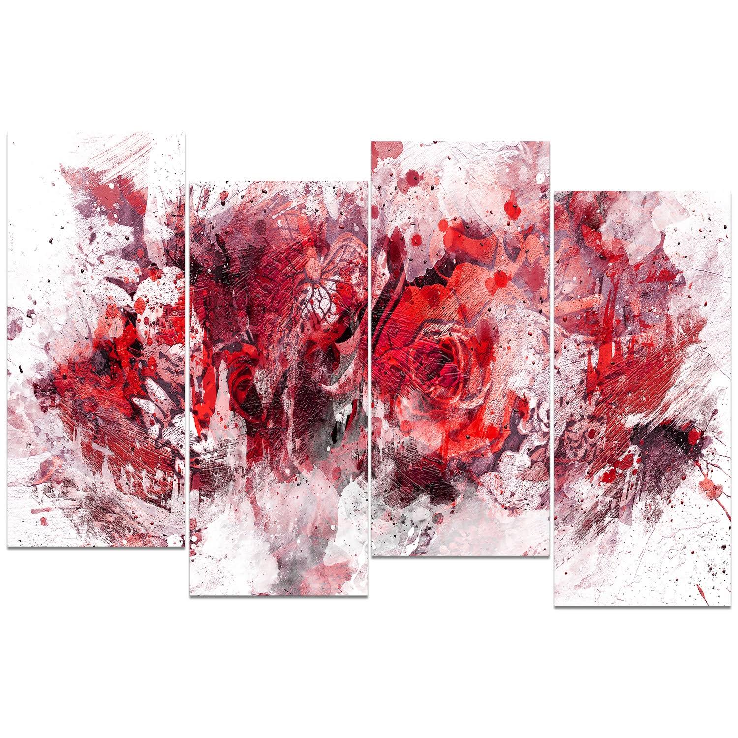 Design Art 'Red Purple Flowers' 48 x 28-Inch 4-Panel Canvas Art Print JO9I_NWU676