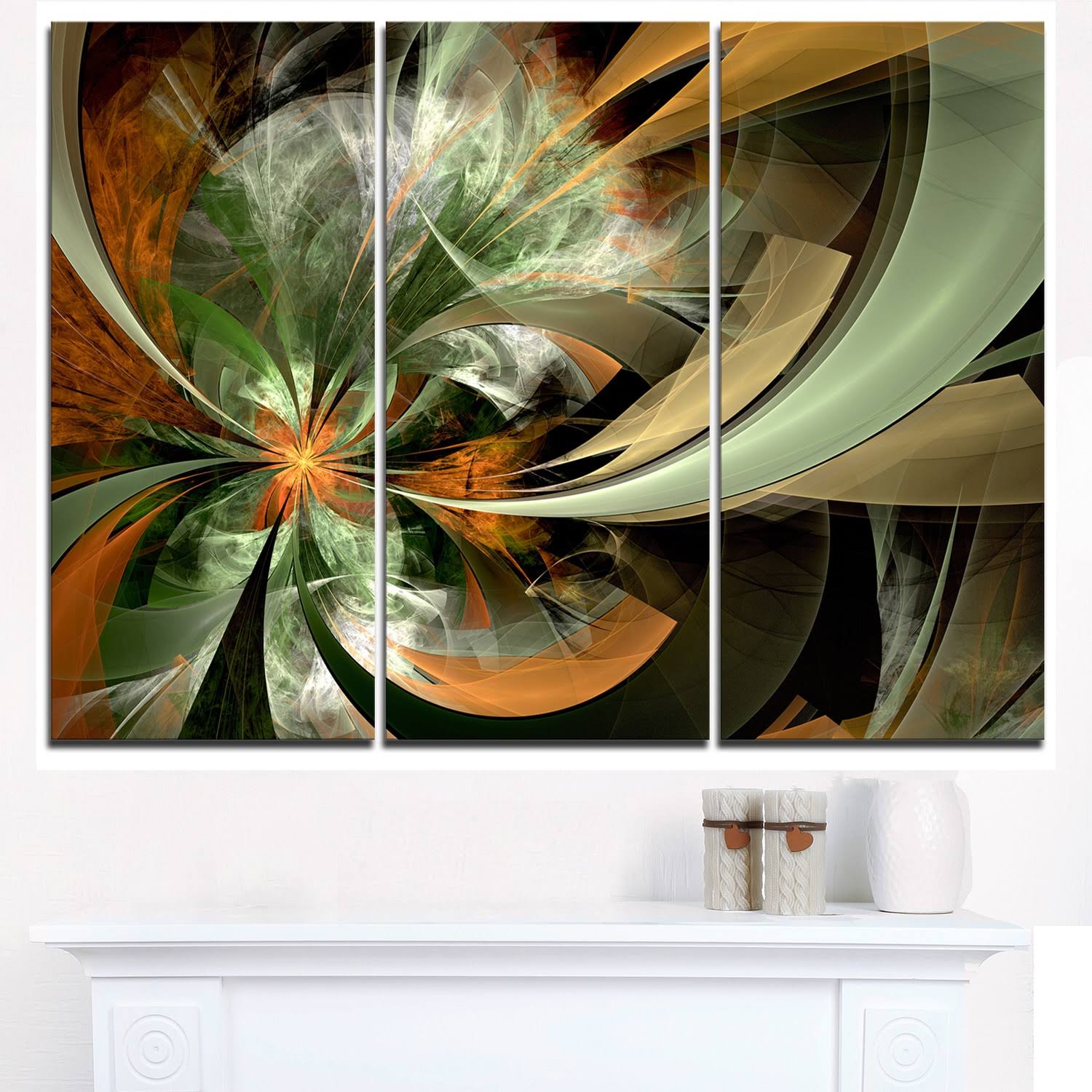 Design Art Symmetrical Orange Green Fractal Flower - 3 Piece Graphic Art on Wrapped Canvas Set, Black MG5I_XUU396