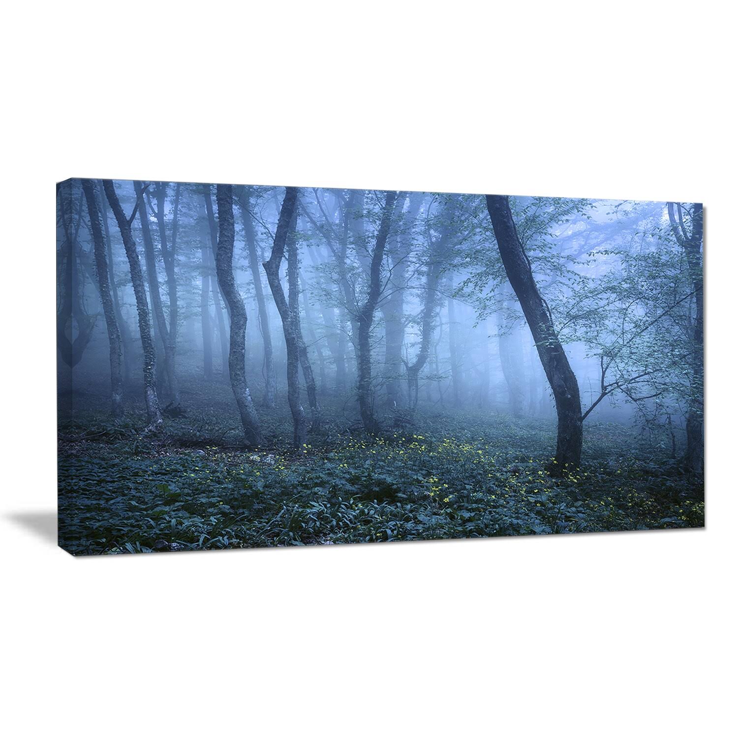 Design Art &Trail Through Blue Fall Forest& Photographic Print on Wrapped Canvas, Size: 20 inch H x 40 inch W x 1 inch D GO7F_LLL311
